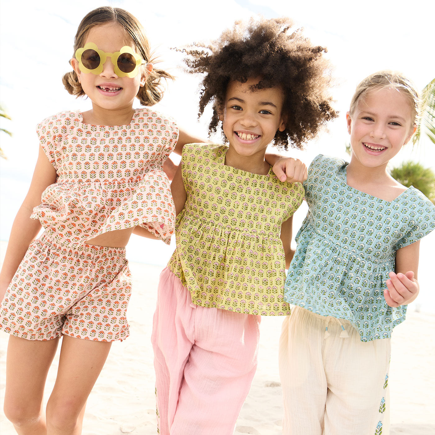 Our one-of-a-kind prints are what make Pink Chicken truly unique—each one thoughtfully designed in-house and inspired by vintage vibes and far-off places. Every season, we fill our styles with the warmth, color, and carefree spirit of a sunny day, making each piece as special as the little ones who wear them!
