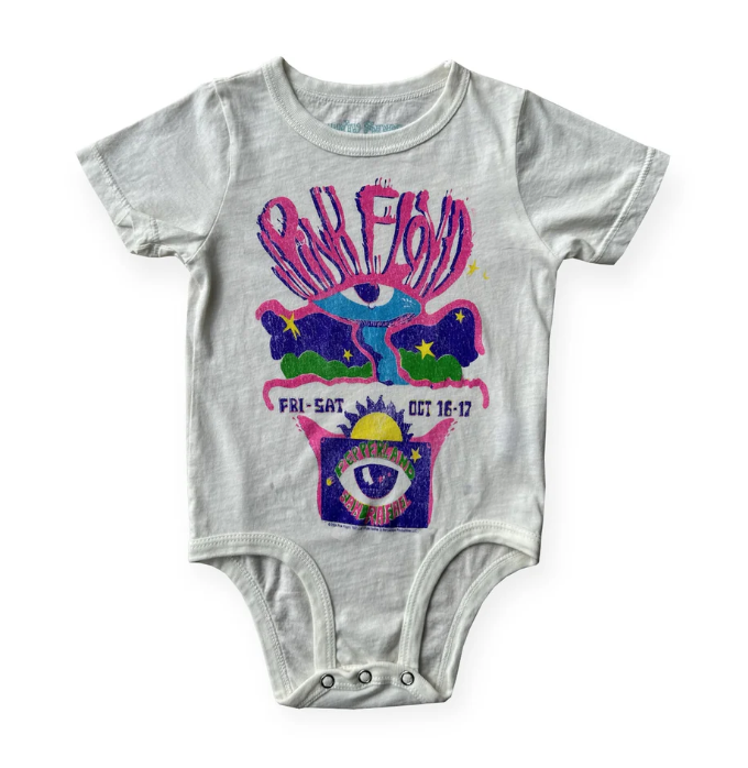Turn up the retro vibes! This Pink Floyd onsie from Rowdy Sprout brings all the vintage-rock charm with a soft, lived-in feel little ones love. The vibrant, groovy graphic pops against a vintage white backdrop for that perfectly throwback look. Easy to wear and super comfy, it’s a mini-music-lover must-have for everyday adventures.