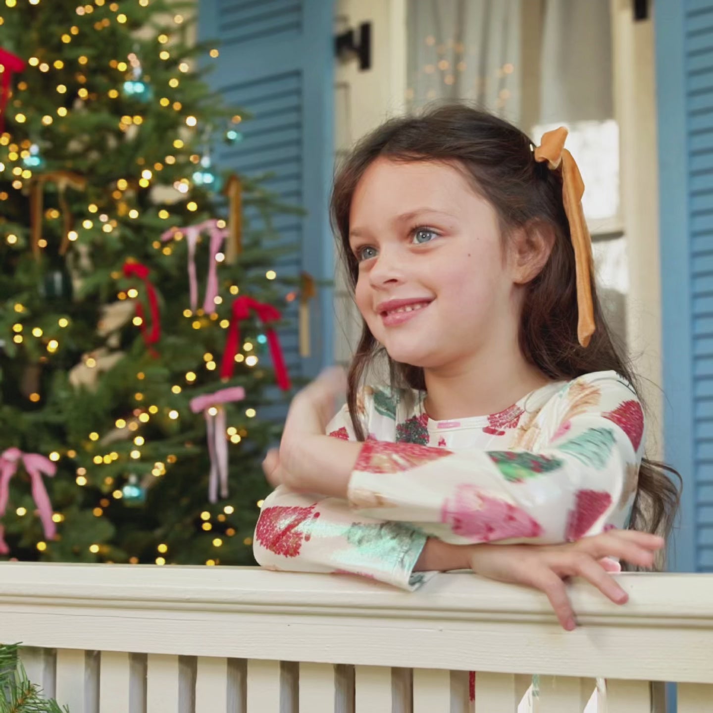 Enchanted Forest! This multi-hued, dreamlike forest of Firs and Spruces is definitely where all of the holiday fairies hang out! Your little will sparkle in our flock favorite Girls Lame Steph Dress. This silhouette, in our magical Bottle Brush Trees print, with its crew neckline, long sleeves, and full gathered skirt gives off an iridescent holiday glow that shifts and shines in the light.