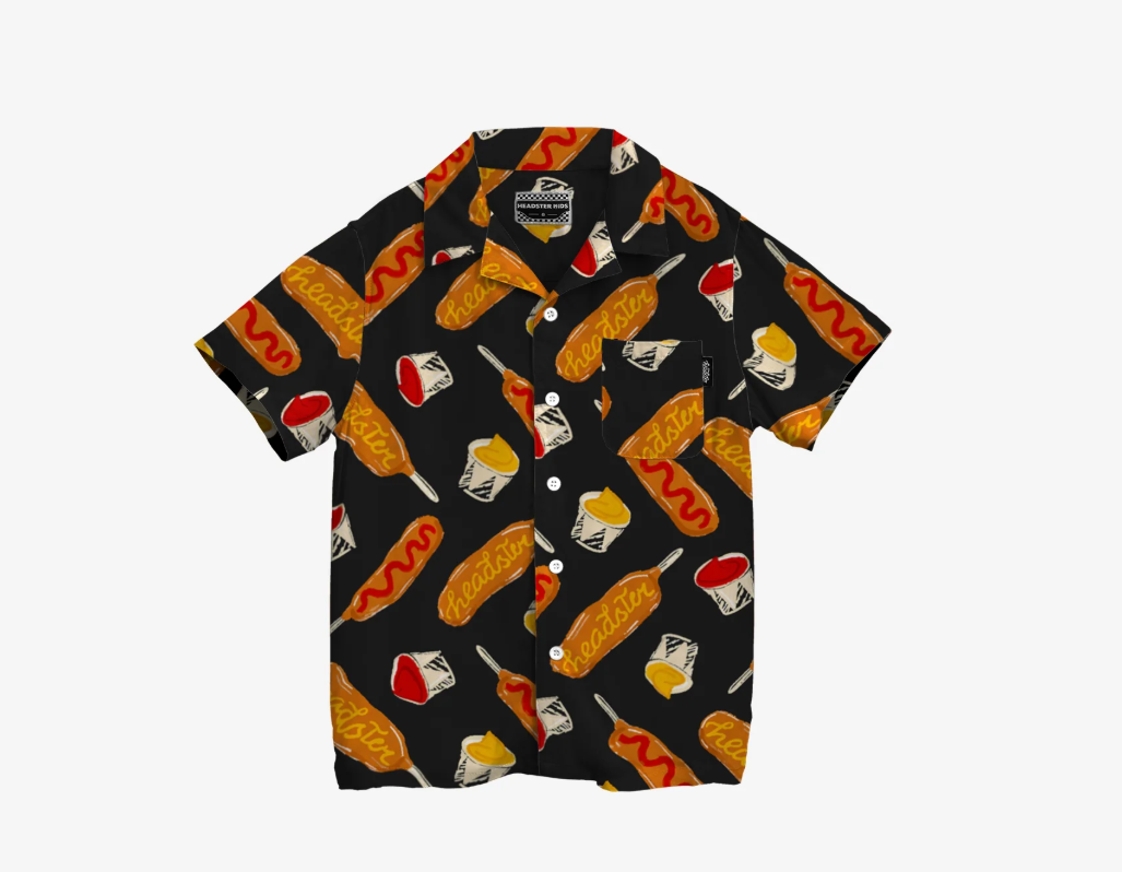 Bite into fun! This Corn Dog print is all about that tasty and ready for some yummy adventures, let’s get snackin’ and rockin’! Lightweight, versatile and eye-catching, this shirt from Headster Kids becomes the centerpiece of any outfit.