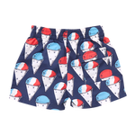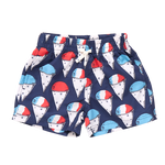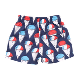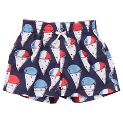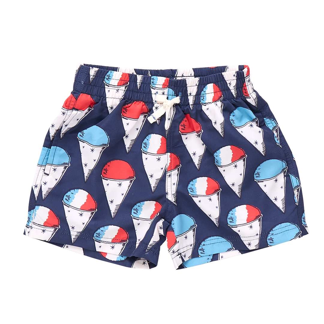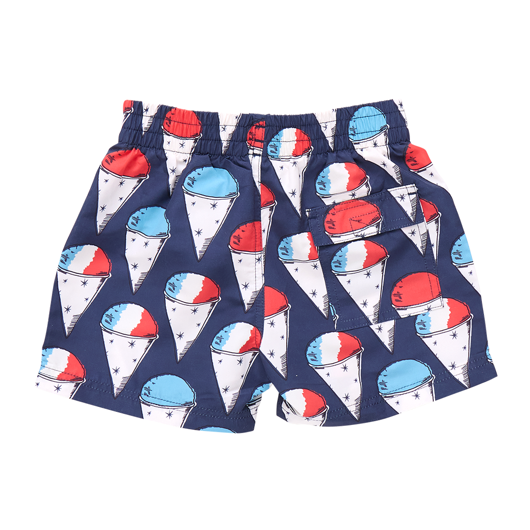 Summer Splash! Whether poolside, lakeside or on the slip n slide, our Baby Boys Swim Trunk has you covered for waterside fun. Practical features on this classic swim shape include roomy side pockets and one velcro back pocket. An elasticized waistband adds comfort and easy movement; finished with a blue accented faux drawstring-tie closure. Hits above the knee. Now with 50+ SPF for an extra boost of sun protection. Available in Red Nautical Anchors, Navy Snow Cones and Lobster and Clams. Match back to Mom, Dad and Sibs in our Red, White and Blue swim collection.