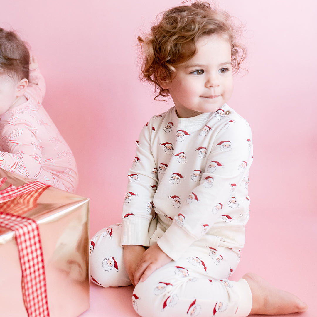 Holiday Bonus! Our Baby Jax Jogger Set keeps little merry-makers cozy and ready to roll. Made from super-soft organic cotton jersey, the long-sleeve sweatshirt features ribbed cuffs and hem, plus an easy button closure at the neck for quick changes. The comfy jogger bottoms have side pockets (for tiny treasures!) and ribbed ankle cuffs for the perfect fit. Finished with our signature Coop logo patch at the back because every journey needs a little style! Available in Mini Candy Cane, Mini Santa and Tossed Dreidels.