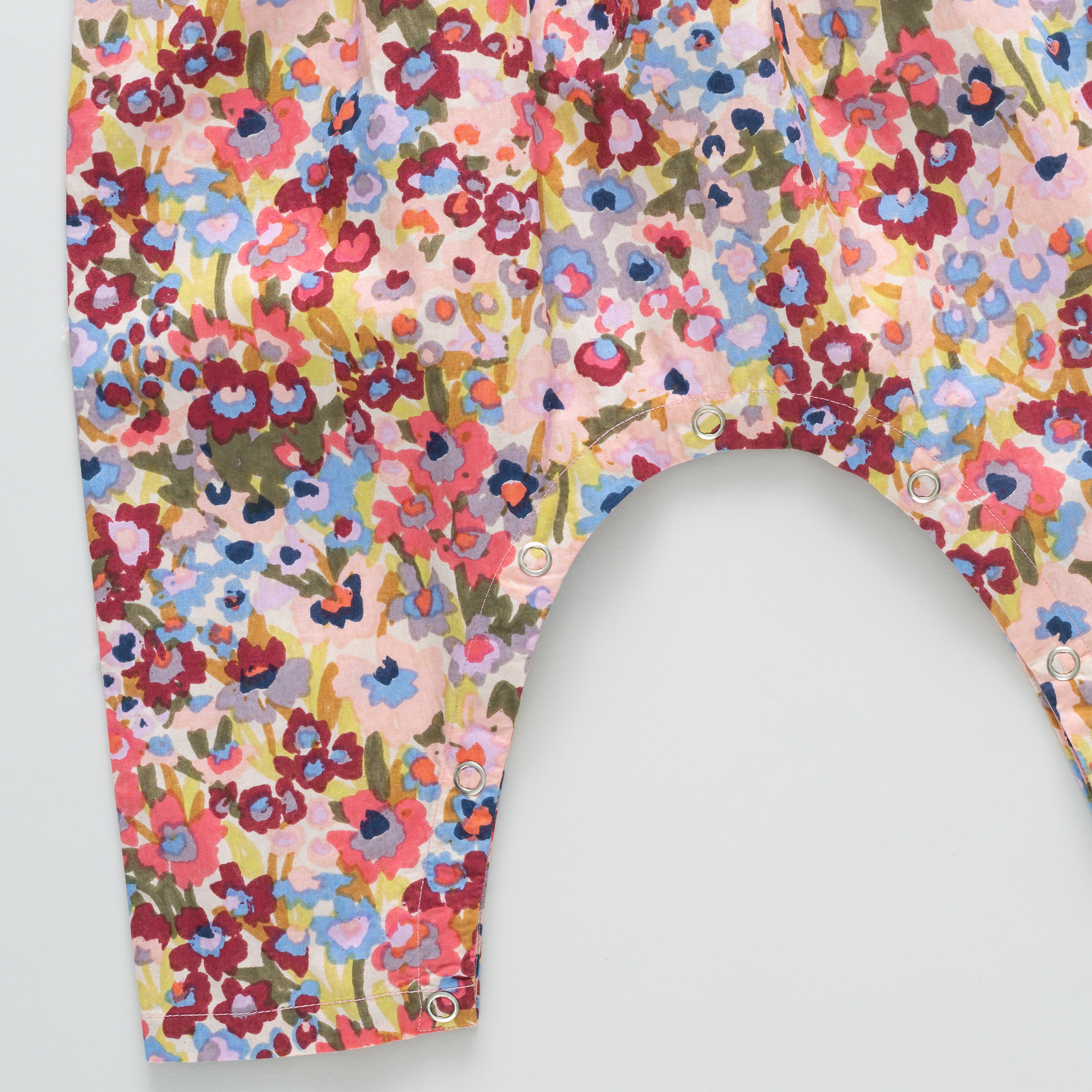 A polished one piece with an elevated floral feel! The Baby Girls Jennifer Jumper features our burgundy sketched floral print on soft 100% cotton poplin. Designed with an invisible zipper and ring snap closures for easy diaper changes, this comfortable silhouette blends style and practicality for spring events and everyday wear.