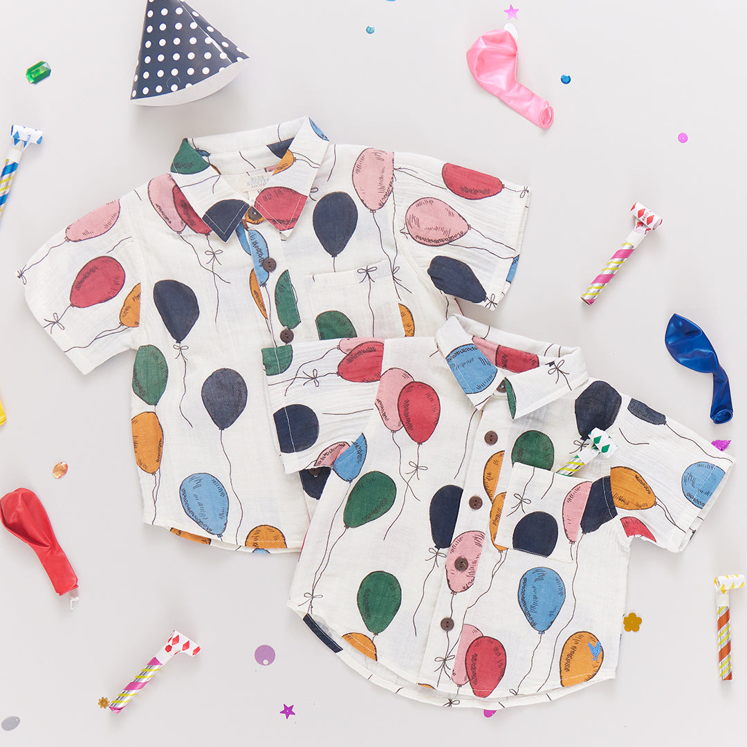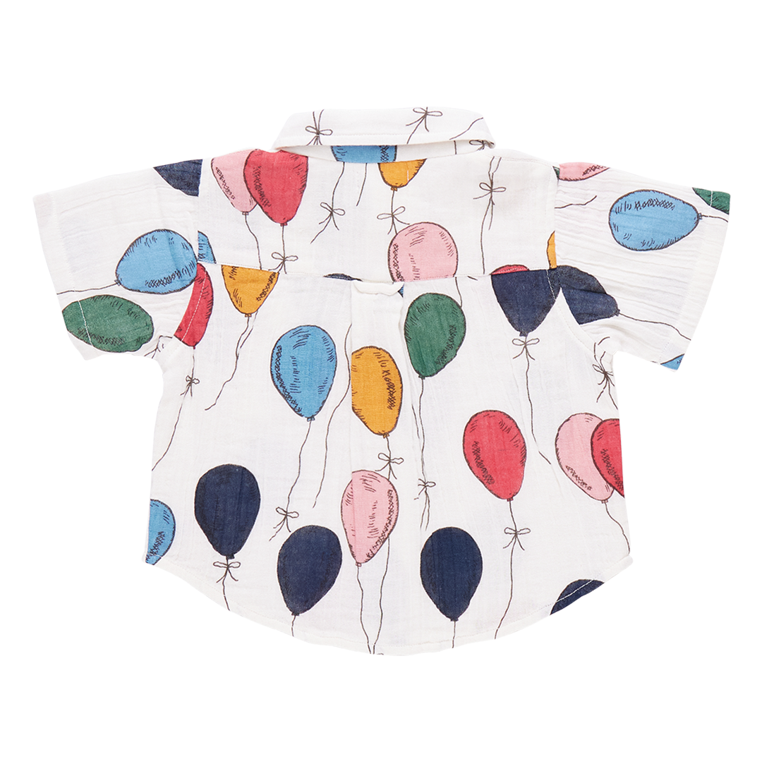 Let's Celebrate! Your little one will be the life of the party in our Baby Boys Short Sleeve Jack Shirt in our fun-loving Balloon Bunches print. Signature details on this short sleeve, collared staple are a pattern on pattern roomy front chest pocket and a faux coconut button front closure. Pair with our Baby Boys Pull On Pant for a party-ready look. Match with our Boys Jack Shirt and Girls Puff Sleeve Stevie Dress and Baby Girls Puff Sleeve Stevie Dress Set for a festive sibling look.