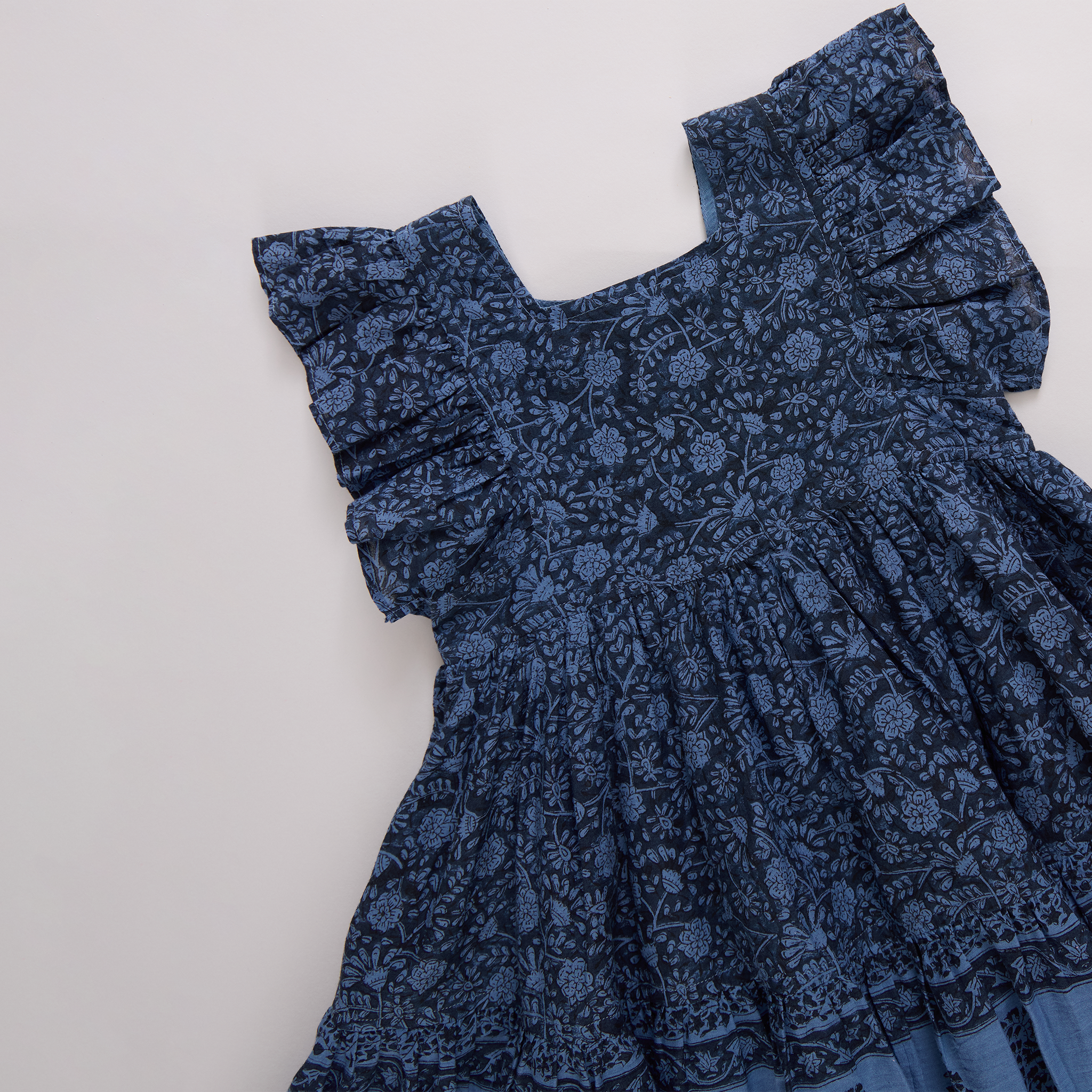 Sweet and timeless, our Girls Elsie Dress in Navy Garden Floral Block Print feels like a breath of fresh spring air. Ruffled sleeves and a full skirt dance with every step. Pair with the Women’s Long Sleeve Pintuck Indira Dress for a timeless family match.