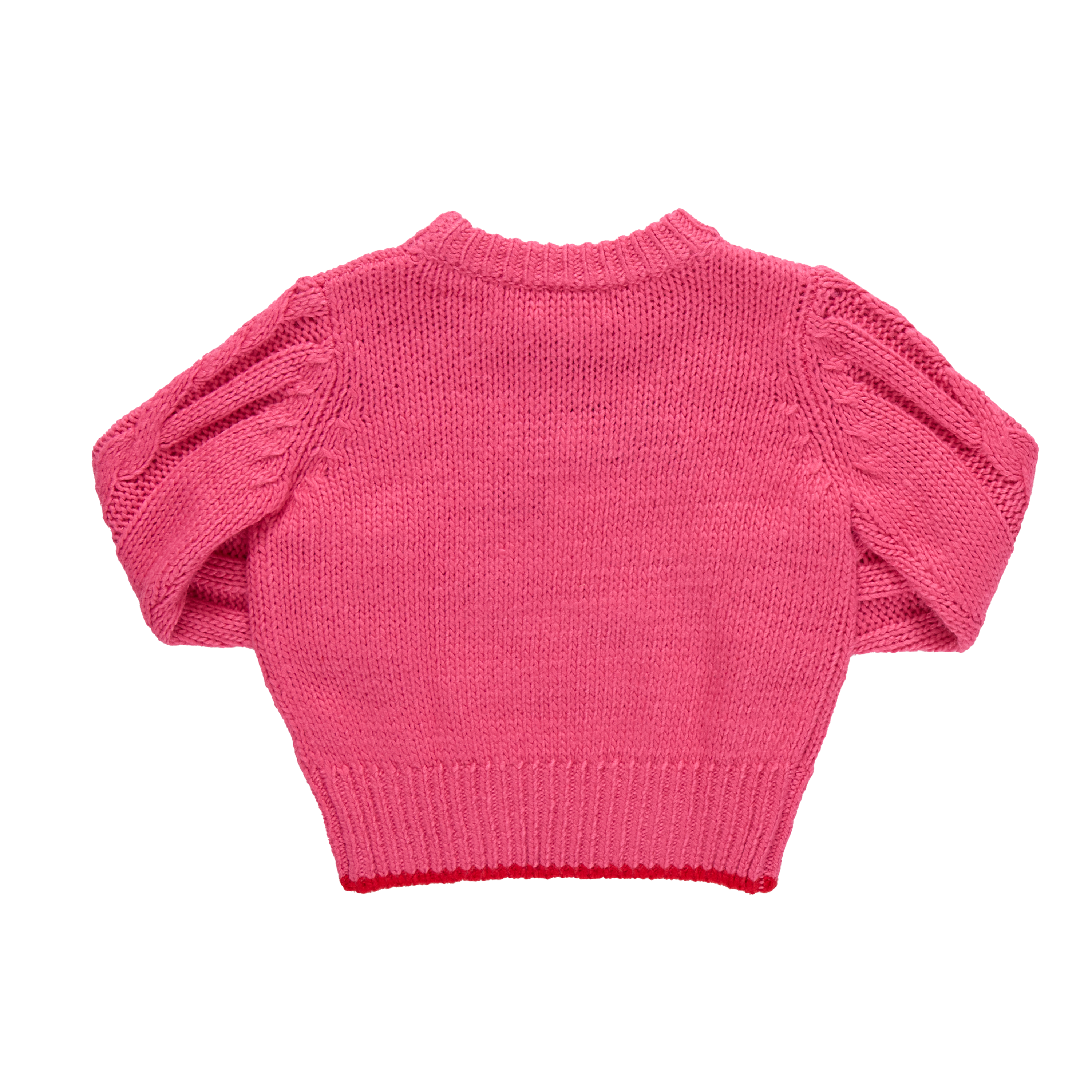 A love letter to cozy days. Our Haven Sweater in Cherry charms with an intarsia cherry motif, a sweet symbol of joy and play, framed by soft cable-knit sleeves for a touch of timeless texture. The perfect balance of whimsy and warmth to gift to your littles ones this holiday season!