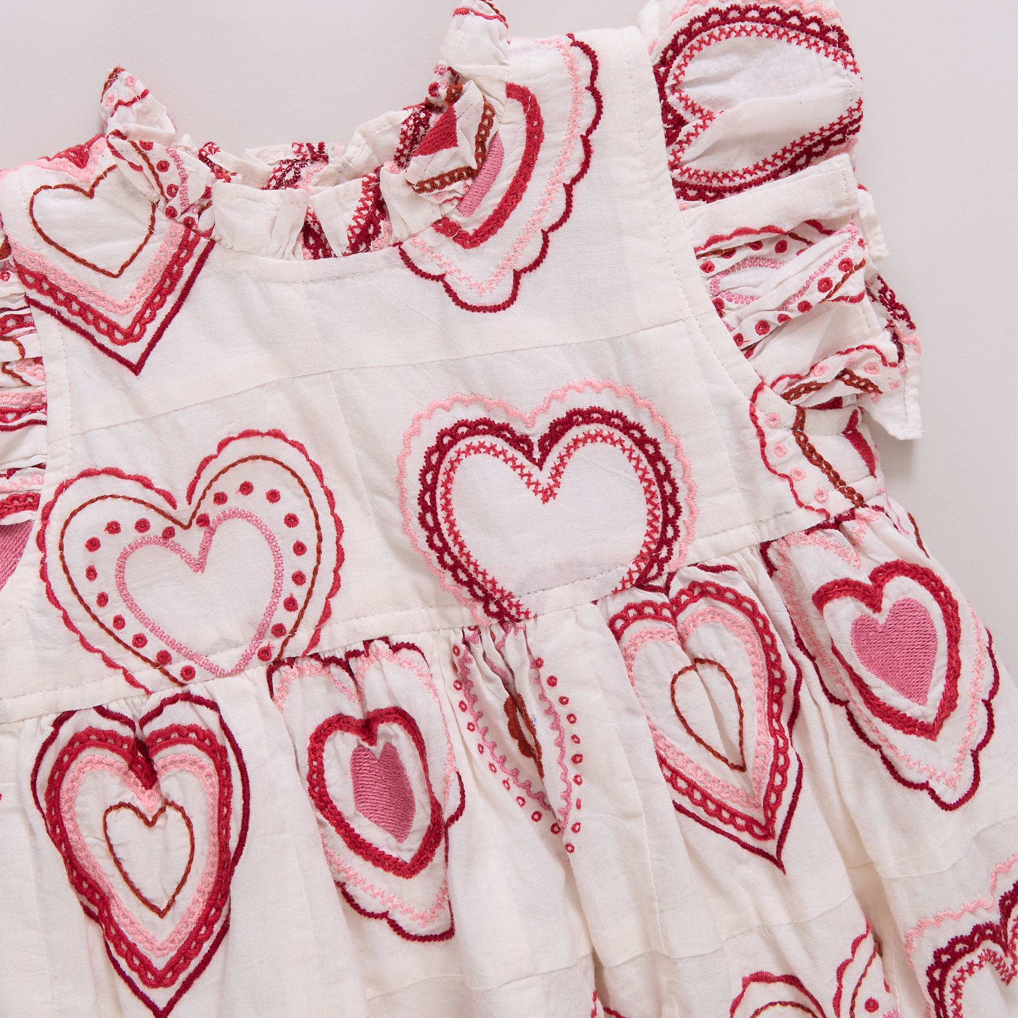 An heirloom-inspired Valentine’s style made to be treasured! This special dress features beautifully quilted heart embroidery, soft ruffle detailing, and a delicate neckline opening. Finished with an invisible zipper for easy wear, it’s a keepsake-worthy silhouette designed for love-filled moments. Match with baby sis in the Jennifer Bubble for a love-filled Valentine’s Day moment. Exclusive to Pink Chicken!