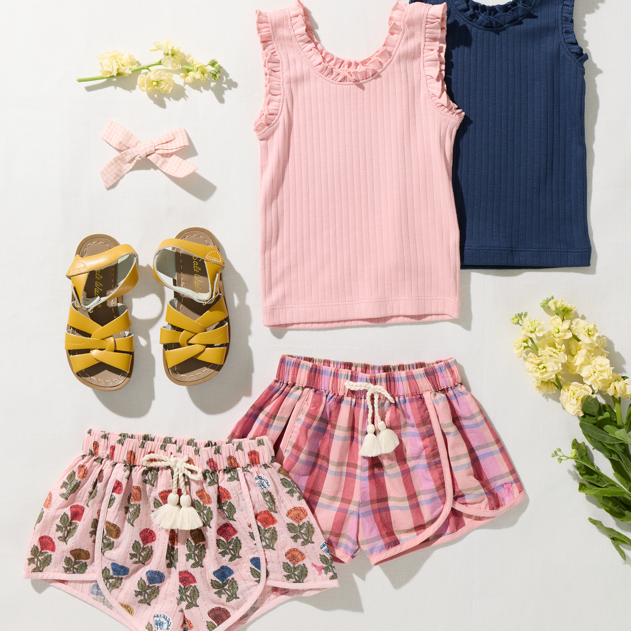 The Girls Millie Short in burgundy madras plaid blends sporty styling with playful detail. Designed with an elastic waist, fixed rope tassel tie, and contrast taping along the front and leg opening, this lightweight short is made for warm spring days filled with movement and fun.