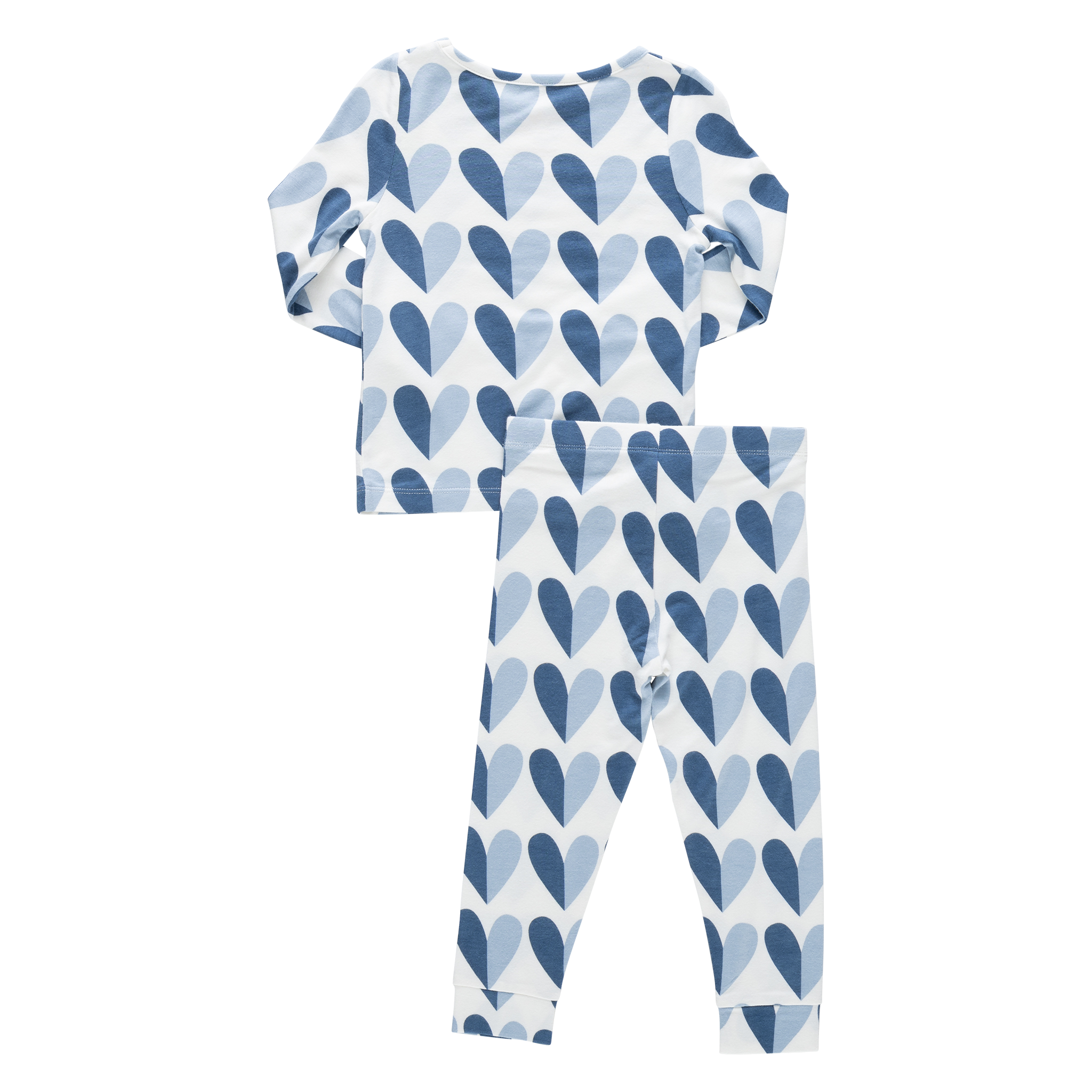 Bedtime love stories start here! Our classic Kids Bamboo PJ Set gets a Valentine’s twist with a playful blue half heart print. Made from ultra soft bamboo fabric with a smooth, silk like feel, this cozy set is perfect for bedtime and slow mornings. Each 2 piece set includes a long sleeve top and elastic waist pant. Bamboo’s breathable qualities help keep littles comfortable year round. Match with siblings for a love filled Valentine’s Day moment.