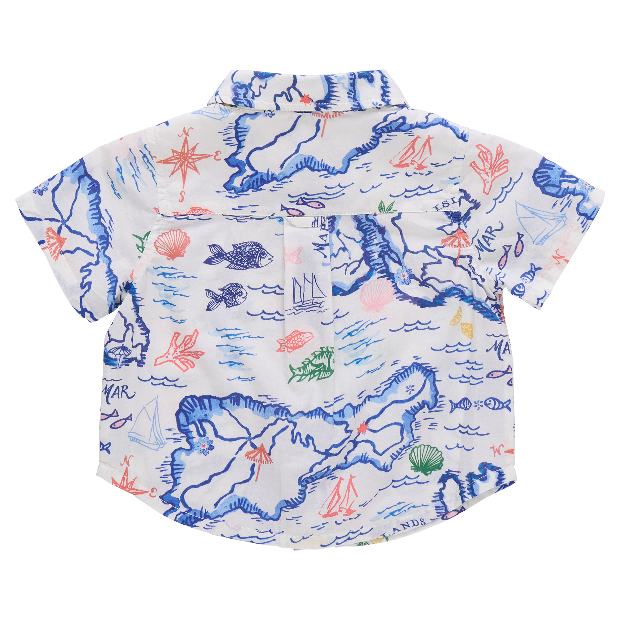 Little explorer! A collaboration with artist Ashley Begley, our Baby Boys Jack Shirt in the Island Map print brings artful adventure to every outing. With a front pocket, short sleeves, and wooden buttons, it’s a breezy essential for vacation days and family getaways alike. Match with big brother in the Boys Jack Shirt for a coordinated look.