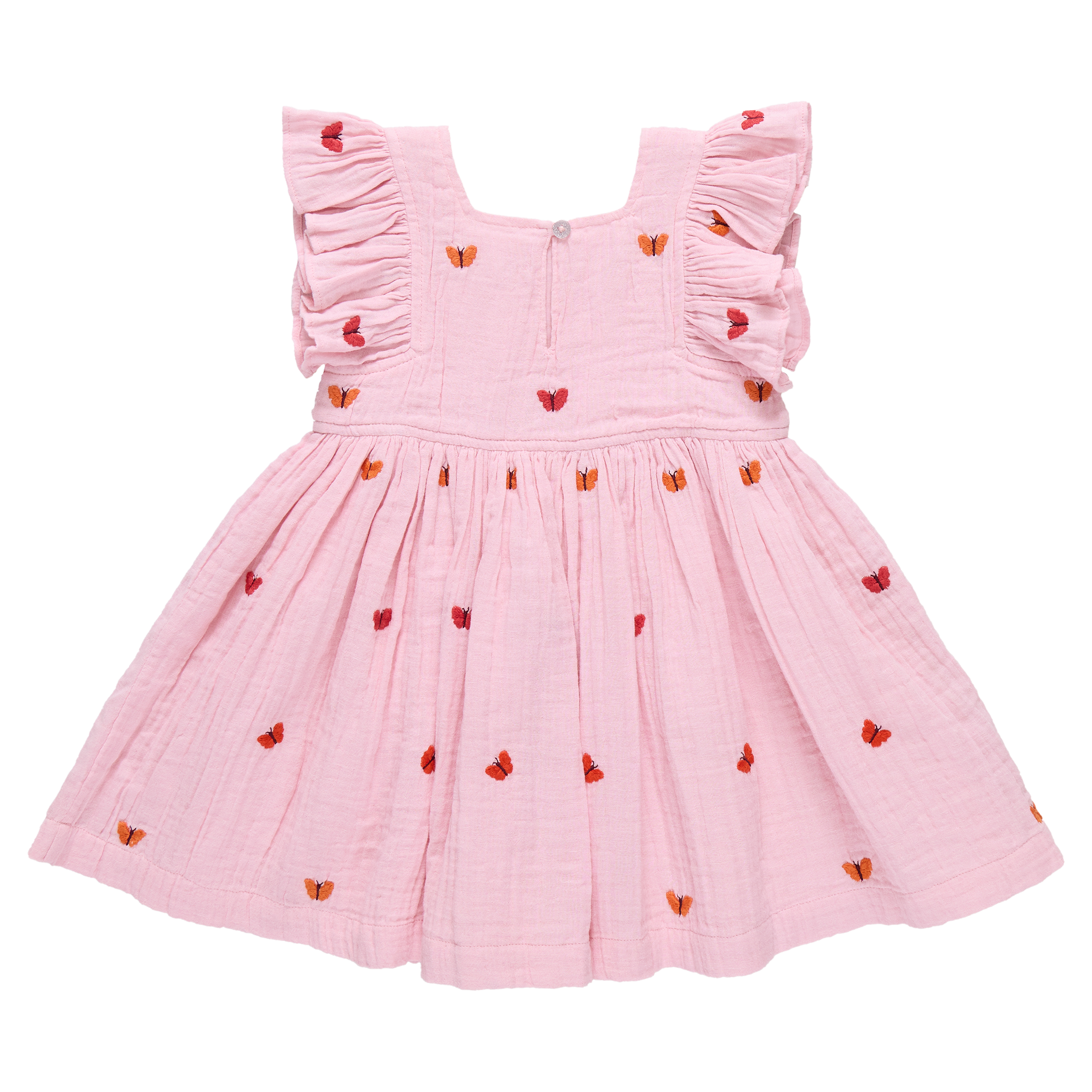 Our beloved Elsie, reimagined with delicate embroidery. Crafted in soft cotton double gauze, this version features flutter sleeves and silver glitter buttons, finished with scattered butterfly embroidery for a whimsical touch. Light, airy, and full of charm.