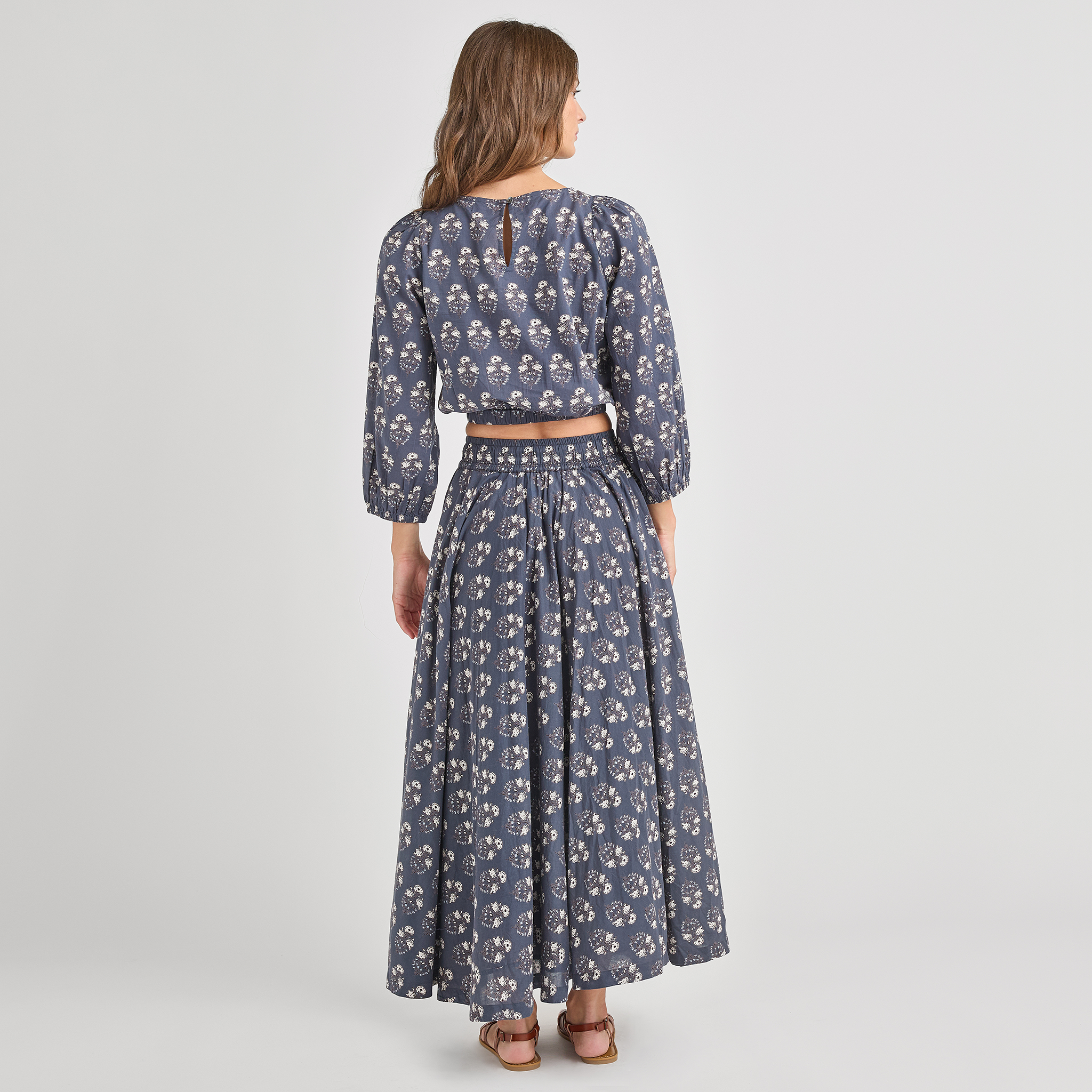 Graceful and effortless, our Women’s Sunita Skirt in Navy Strawflower Block Print moves like a warm spring breeze. The tiered silhouette and hand-blocked florals make it a timeless piece that blooms beside your little ones in their Navy Strawflower styles.
