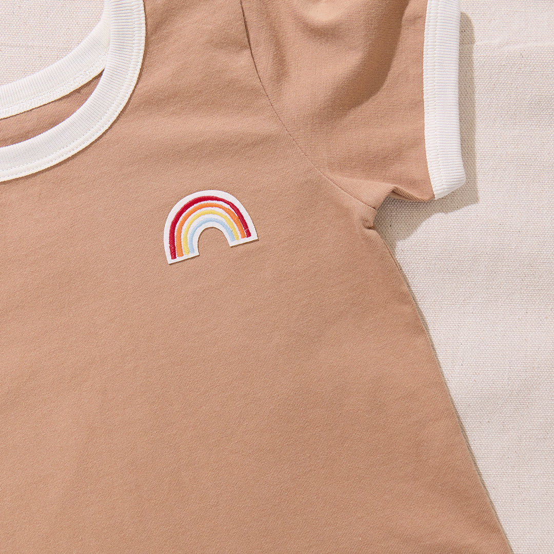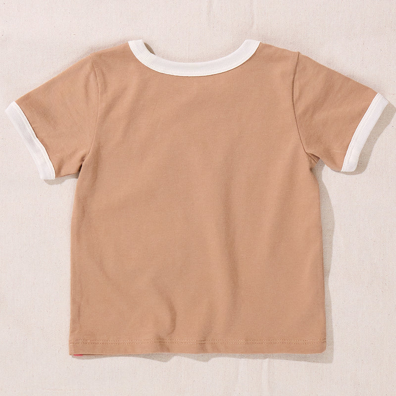 Tag! You're It! Scour every corner of the neighborhood in our not at all basic Adventure T-shirt. This short sleeve crewneck, available in solids, prints and stripes, wears well with any of our newly hatched shorts, leggings and joggers. Signature Coop logo loop across bottom hem.