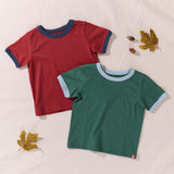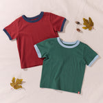 The secret's out, our Adventure Ringer T-Shirt is up for anything! This comfy short-sleeve crewneck comes with a contrasting sleeve and neckline—perfect for mixing, matching, and making mischief! Plus, our signature Coop logo loop at the hem adds an extra touch of fun. Pair with our easy to wear Cartwheel Leggings, Park Pants or Joggers. Now get outside and get going! Available in Dark Red and Pine.
