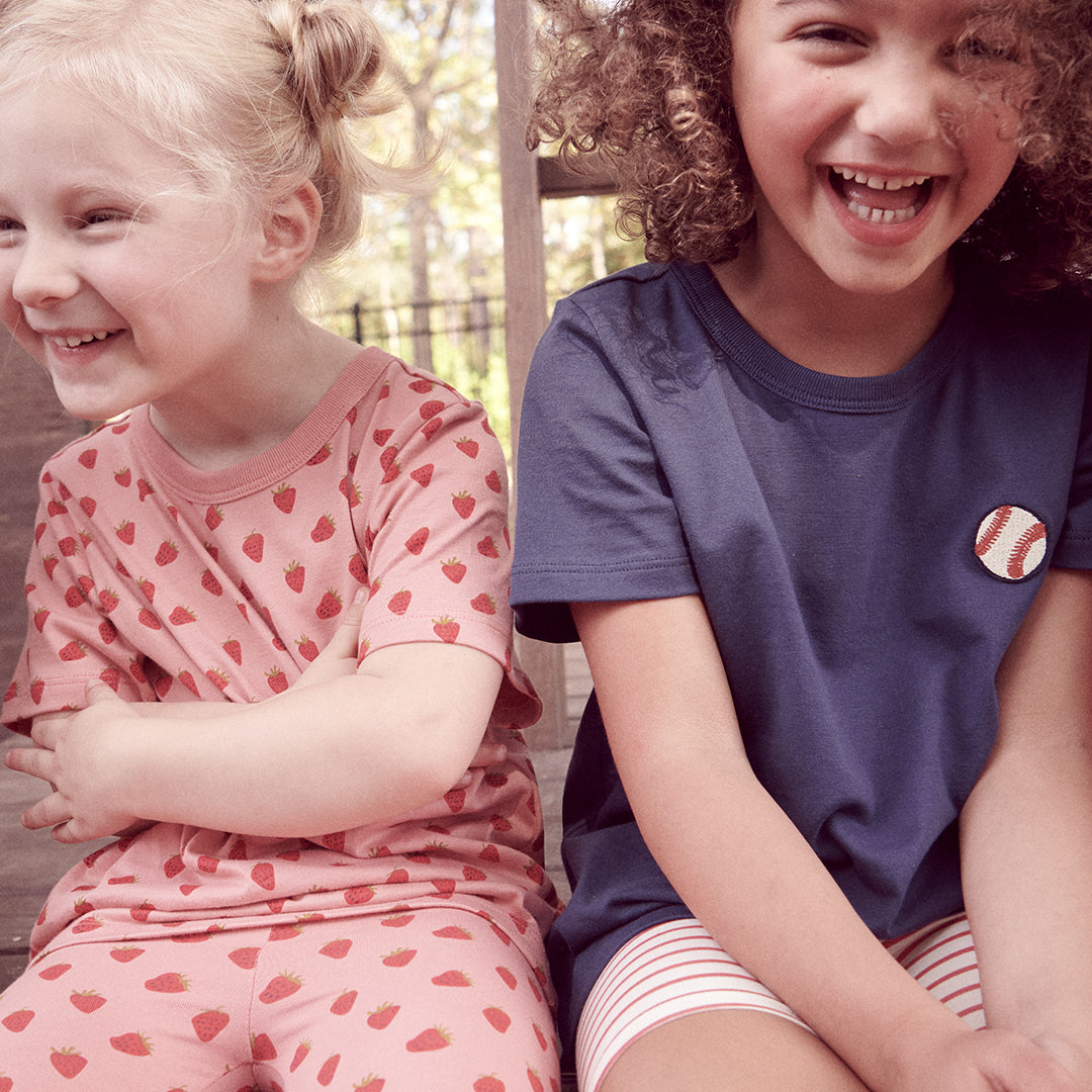 Ready, set, explore! Whether you're sprinting through the backyard, conquering the playground, or leading a game of tag, our super-soft organic Adventure T-shirt is up for anything. This comfy short-sleeve crewneck comes in sun-drenched solids, vintage prints, and classic stripes—perfect for mixing, matching, and making mischief! Plus, our signature Coop logo loop at the hem adds an extra touch of fun. Pair it with our awesome new shorts, leggings, or joggers, and let the adventures begin!