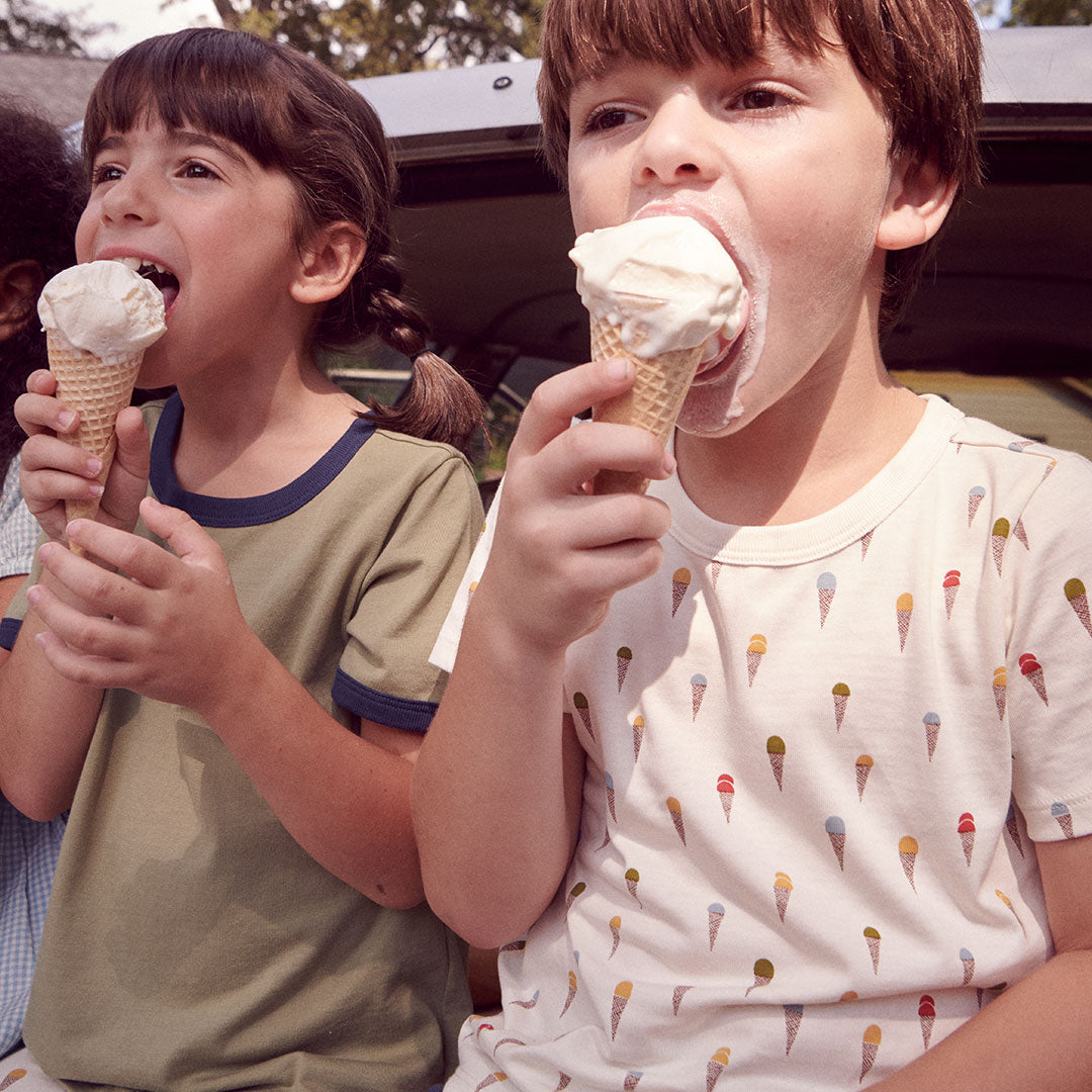 Ready, set, explore! Whether you're sprinting through the backyard, conquering the playground, or leading a game of tag, our super-soft organic Adventure T-shirt is up for anything. This comfy short-sleeve crewneck comes in sun-drenched solids, vintage prints, and classic stripes—perfect for mixing, matching, and making mischief! Plus, our signature Coop logo loop at the hem adds an extra touch of fun. Pair it with our awesome new shorts, leggings, or joggers, and let the adventures begin!