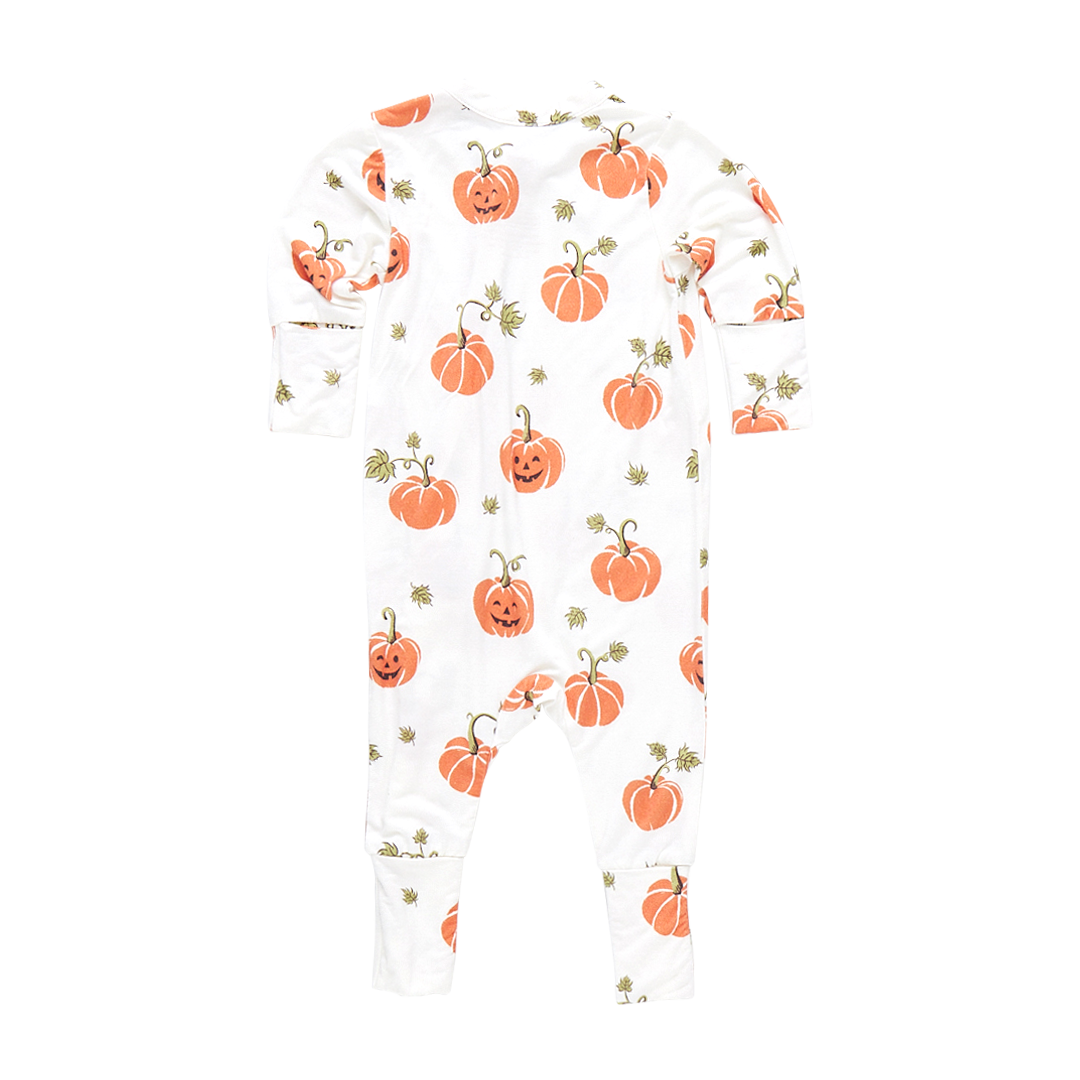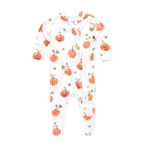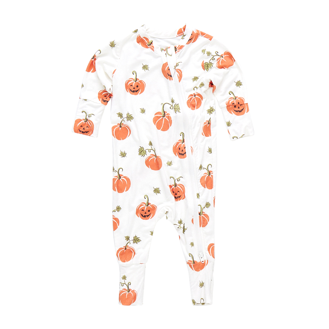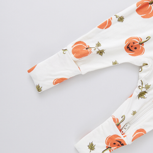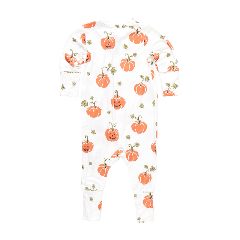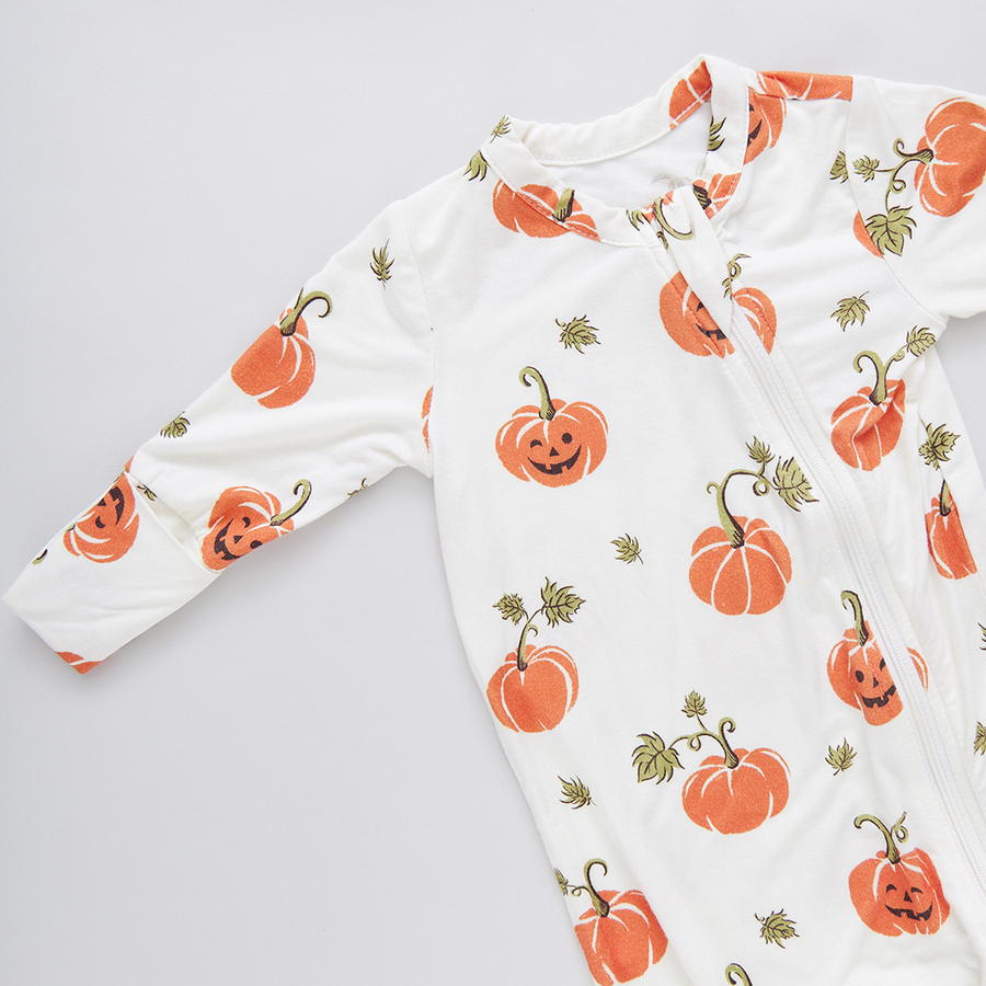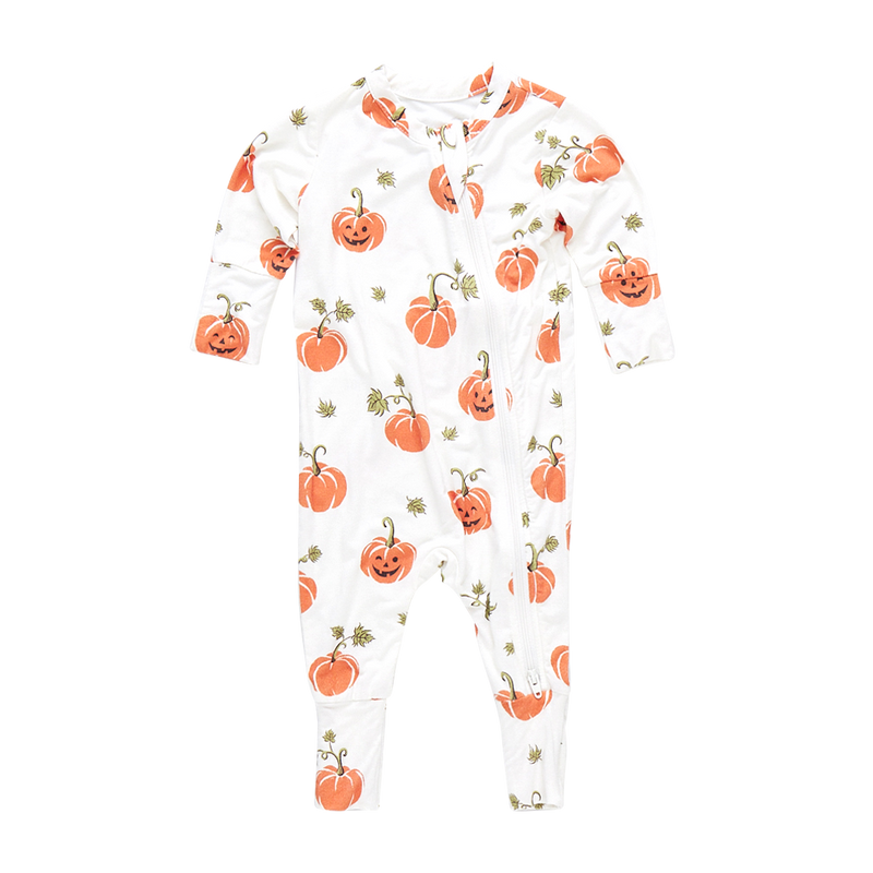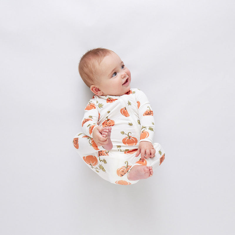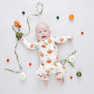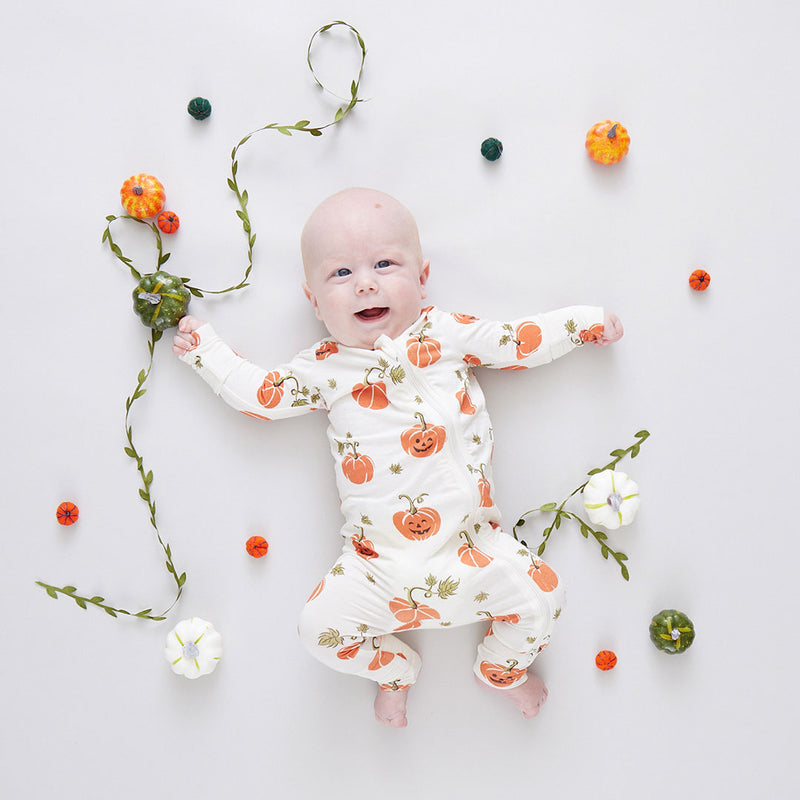 Introducing our first ever Baby's Firsts Collection! Celebrate the good times - month by month, size by size! Adorably festive onesies for a year’s worth of memorable firsts. Shown here in our Petite Pumpkins print, perfect for a first Halloween. Crafted in bamboo fabric, these rompers are crazy soft with a smooth, silk-like texture. Bamboo is breathable and it keeps littles cool & comfortable in the summer and warm & cozy in the winter.
