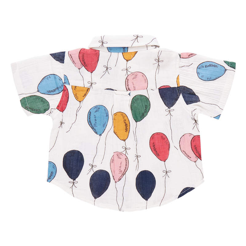 Let's Celebrate! Your little one will be the life of the party in our Baby Boys Short Sleeve Jack Shirt in our fun-loving Balloon Bunches print. Signature details on this short sleeve, collared staple are a pattern on pattern roomy front chest pocket and a faux coconut button front closure. Pair with our Baby Boys Pull On Pant for a party-ready look. Match with our Boys Jack Shirt and Girls Puff Sleeve Stevie Dress and Baby Girls Puff Sleeve Stevie Dress Set for a festive sibling look.