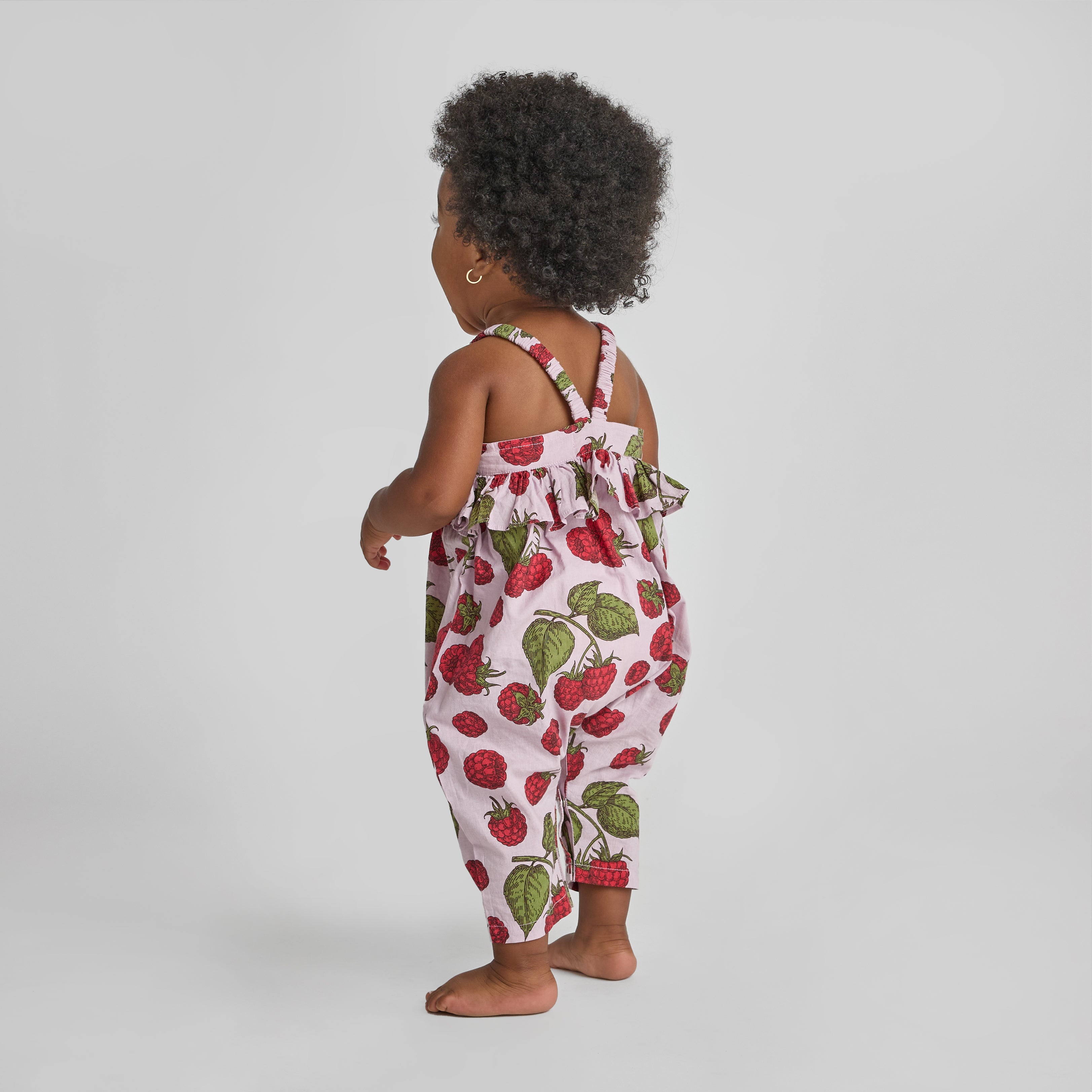 Playful and perfectly practical. The Baby Girls Brianne Jumper in Purple Raspberries features a cheerful fruit print and easy elastic straps for a comfortable fit. The relaxed silhouette allows for movement and layering, making it ideal for transitional spring days. Crafted in soft cotton cambric, this piece balances sweetness with everyday ease.
