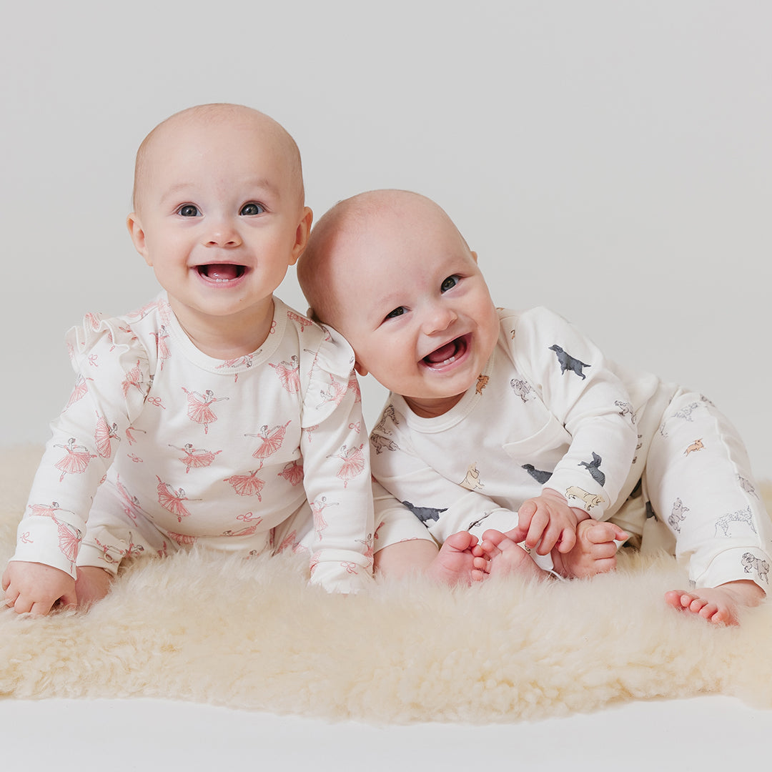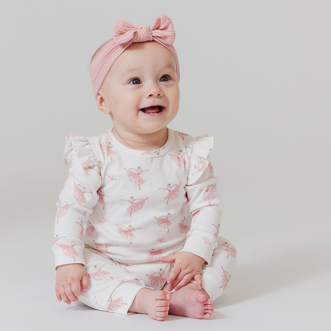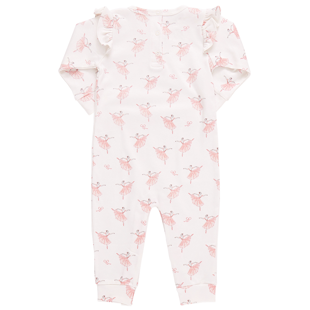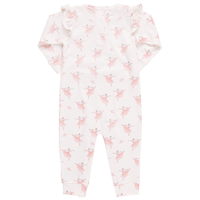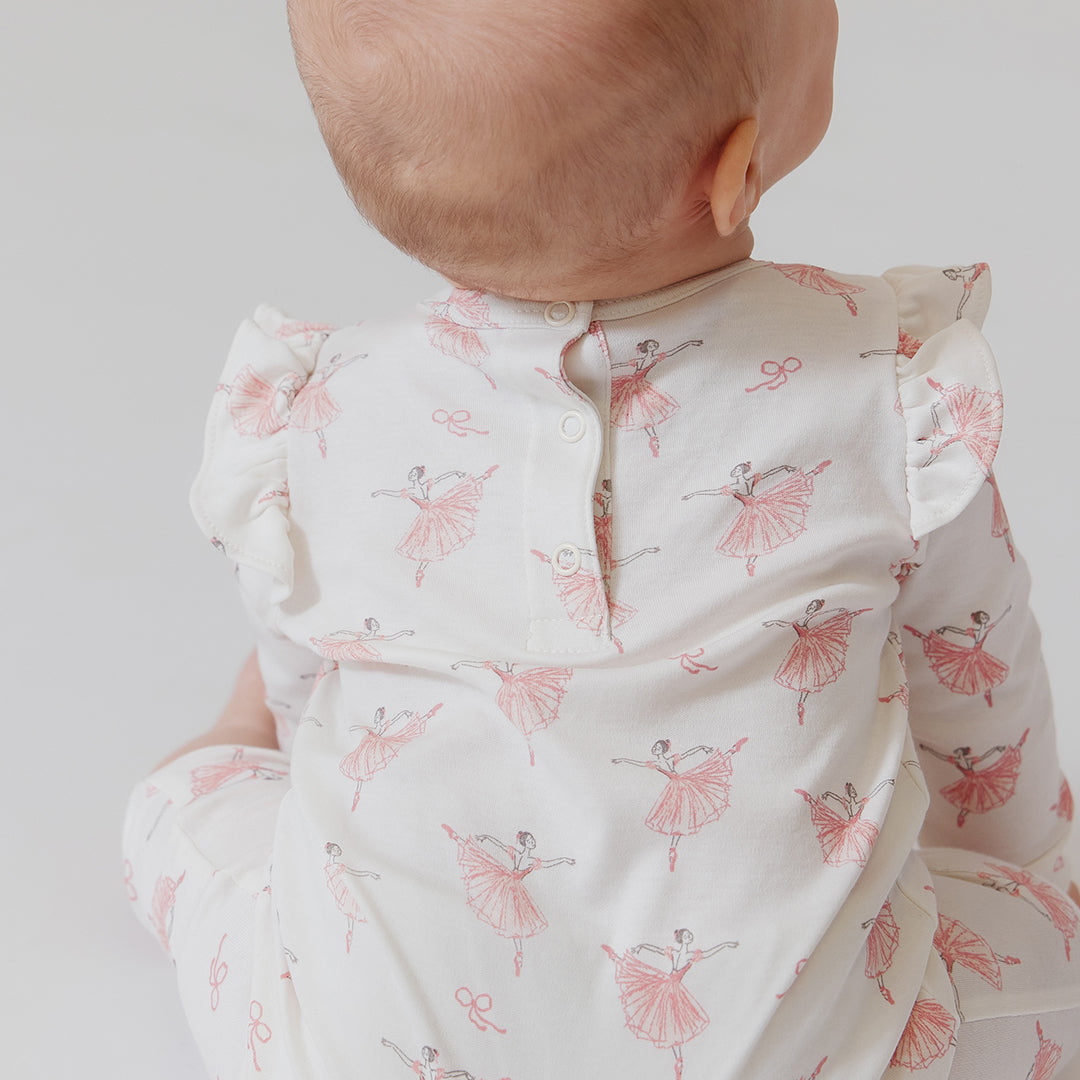 Pretty on Pointe! Delicate dancers leap across a creamy ground on our super cozy Baby Organic Ruffle Romper. Crafted in our new 100% Organic Pima Cotton, this long sleeve romper features a delightful ruffle at the shoulder and a ring snap closure at the leg for easy diaper changes.