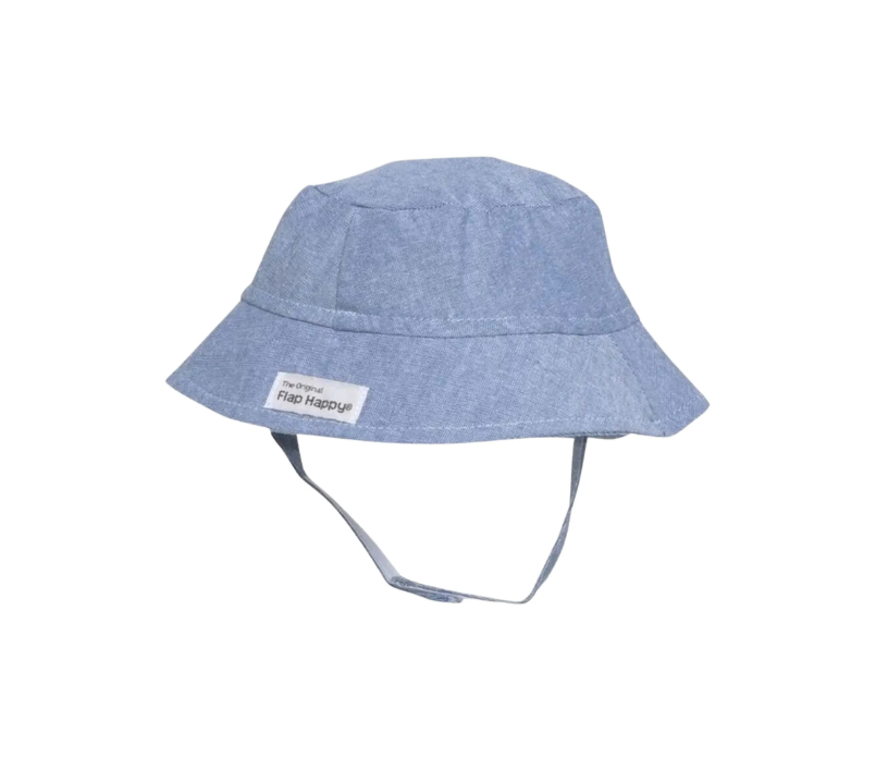 Say goodbye to sunburns and hello to cuteness with this Chambray Bucket Sun Hat! This Flap Happy Bucket Hat provides UPF 50+ protection for face, ears, and neck. Ideal for any outdoor summer adventure!