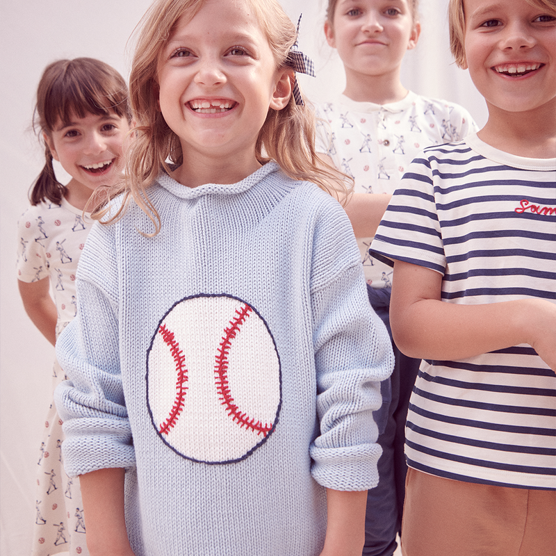 Sweater weather, but make it playful! Our roll-neck, 100% organic cotton pullover is the perfect extra layer for crisp adventures—whether it’s a treehouse hangout or an afternoon exploring the great outdoors. With vintage-inspired graphics and charming rolled edges at the sleeves and waist, this sweater brings all the cozy vibes with a side of cool.