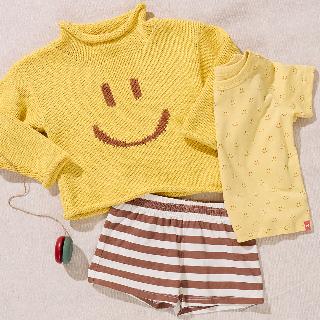 Sweater weather, but make it playful! Our roll-neck, 100% organic cotton pullover is the perfect extra layer for crisp adventures—whether it’s a treehouse hangout or an afternoon exploring the great outdoors. With vintage-inspired graphics and charming rolled edges at the sleeves and waist, this sweater brings all the cozy vibes with a side of cool.
