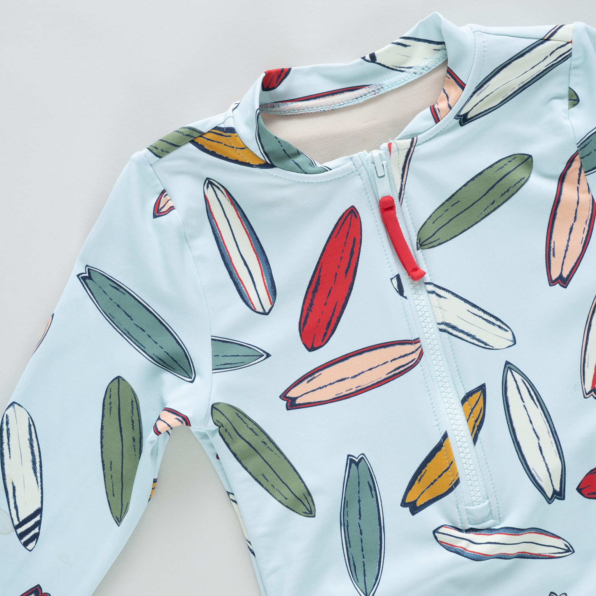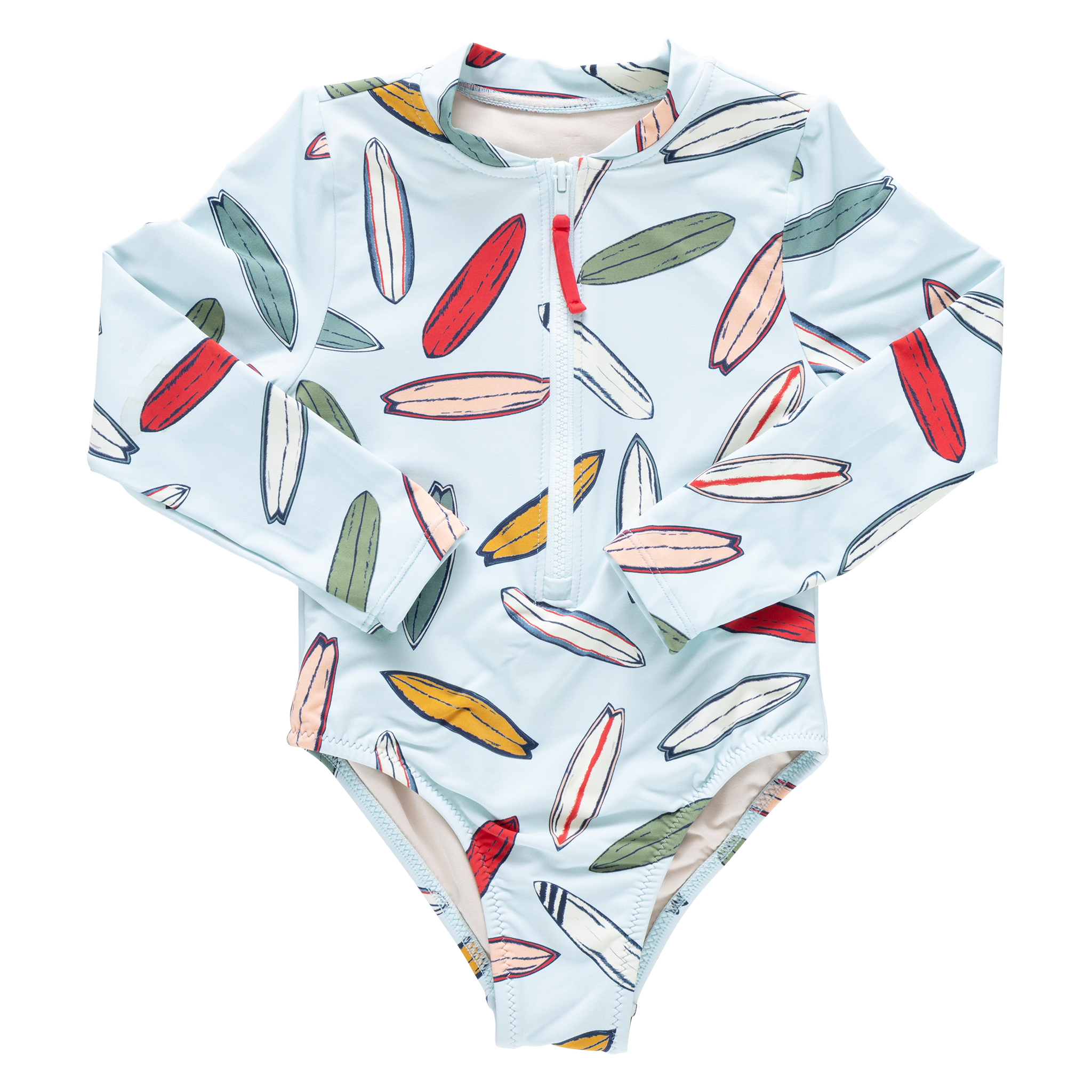 Catch the wave in our Surfboards Arden Suit, a long sleeve favorite made for fearless splashers and sandy shoreline explorers. Designed with a sleek silhouette and finished with a bright red zipper pull for a playful pop, this one-piece blends classic surf style with thoughtful detail. Easy to wear and built for movement, it’s ready for every dive, dash, and dock jump.