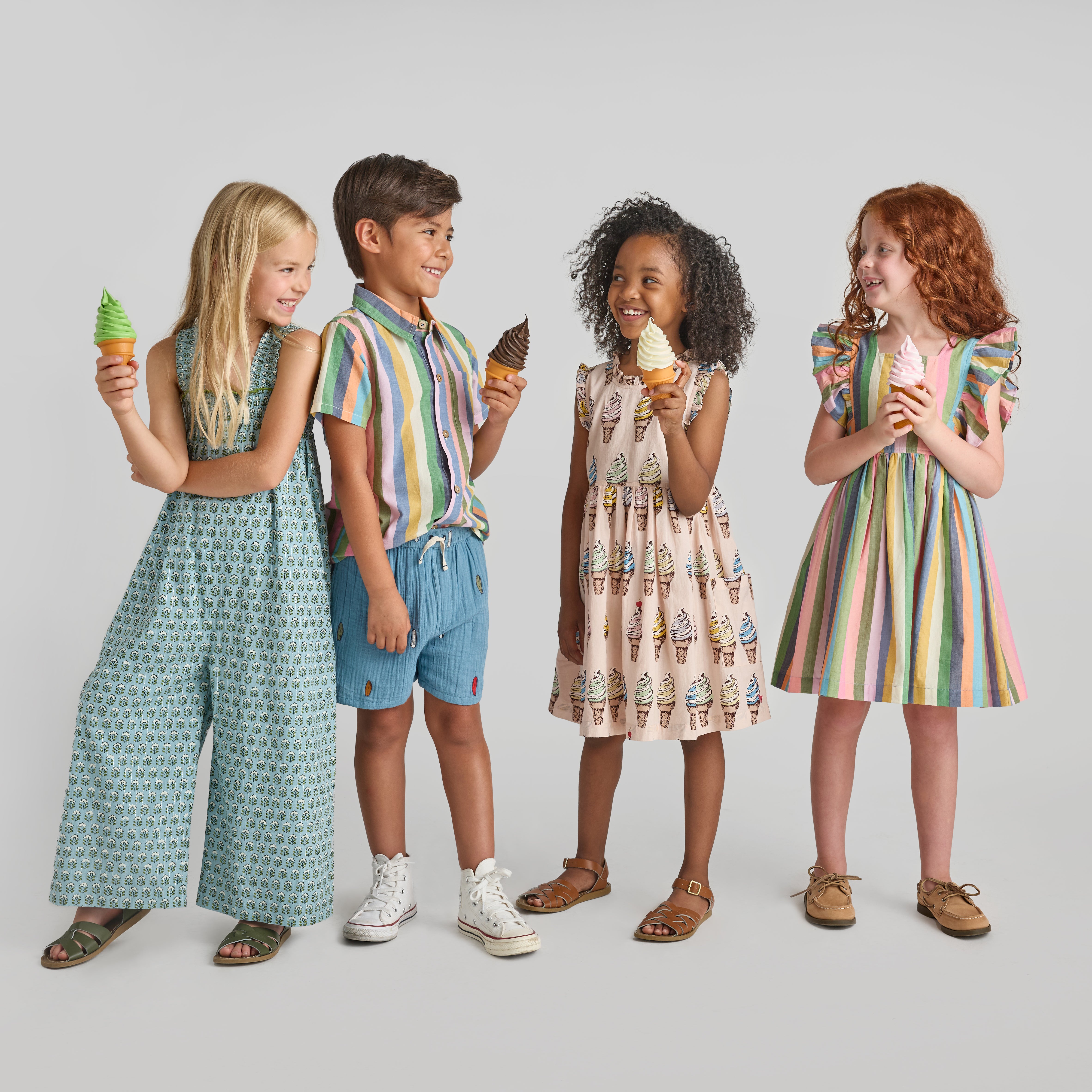 A statement silhouette with everyday ease. The Eleven Jumper in Blue Prairie Blockprint features a wide-leg shape with a beautifully smocked bodice for comfort and movement. Green pearl stitching at the top opening adds a thoughtful pop of contrast, while the breezy drape makes this a standout for spring celebrations and sunny afternoons alike.