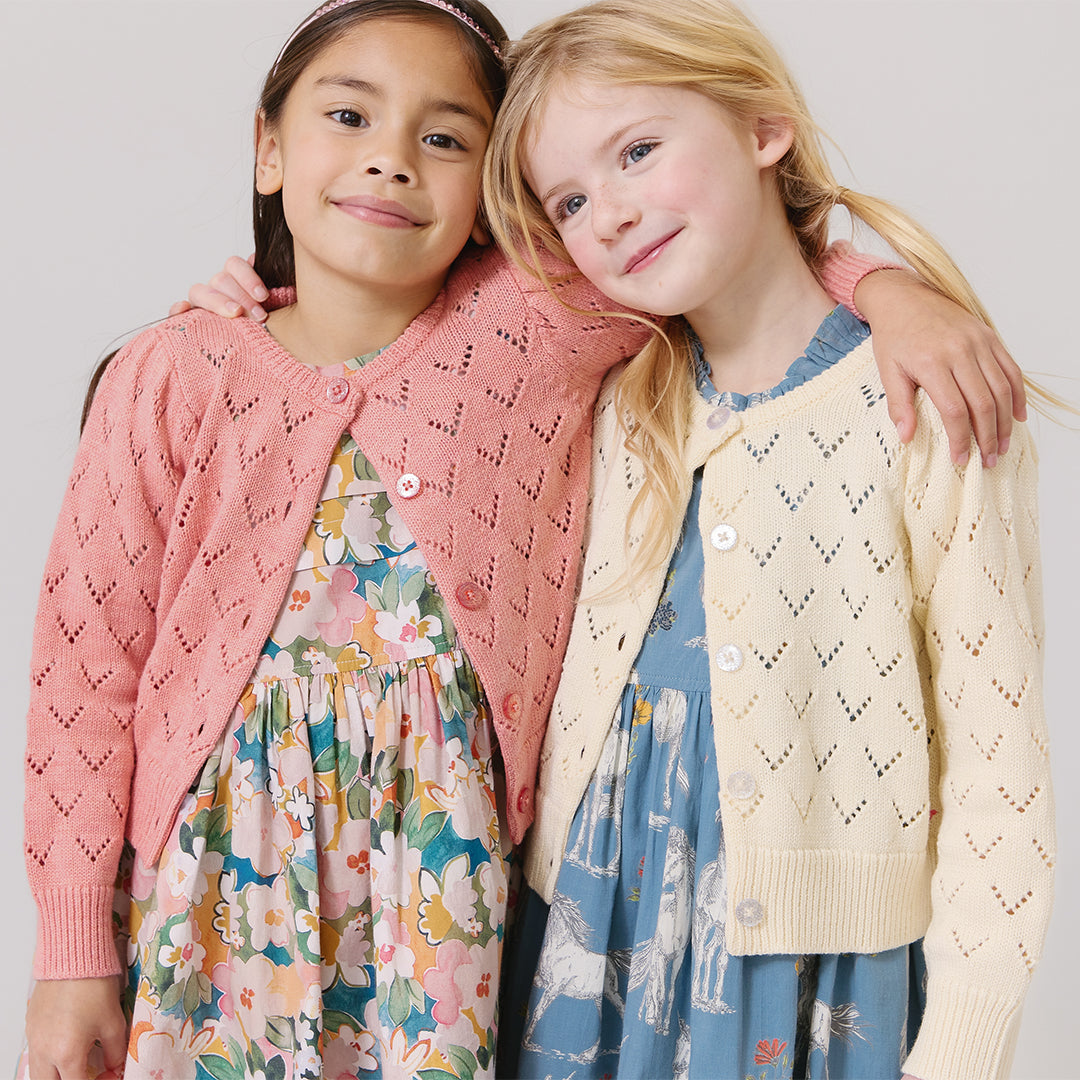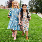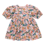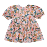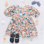 Garden of Dreams Our soft and feminine Watercolor Floral is like a kaleidescope of floating flowers floating. This dreamy print is the perfect compliment to our classically tailored Baby Girls Evelyn Dress Set. This easy to wear piece features a pleated chest and gathered long sleeves. Perfect for the first day of school or a museum outing to see Monet's gardens. Our signature glitter buttons at the back round out the cheerful look. The matching elastic waist diaper cover features a fixed green satin bow at the waist. You'll find Watercolor Floral throught the Fall Collection making Mommy & Me looks easy to achieve.