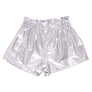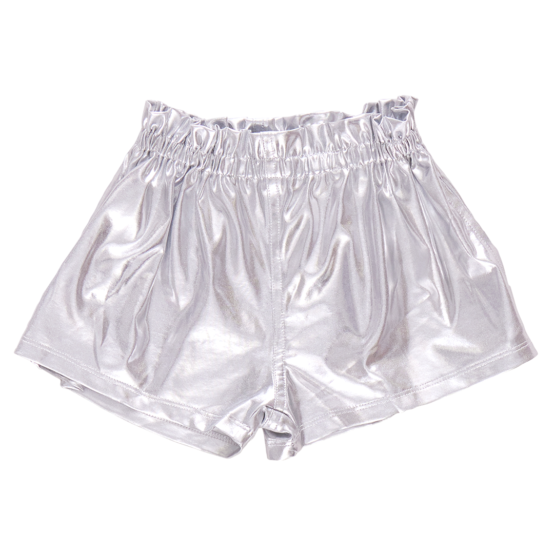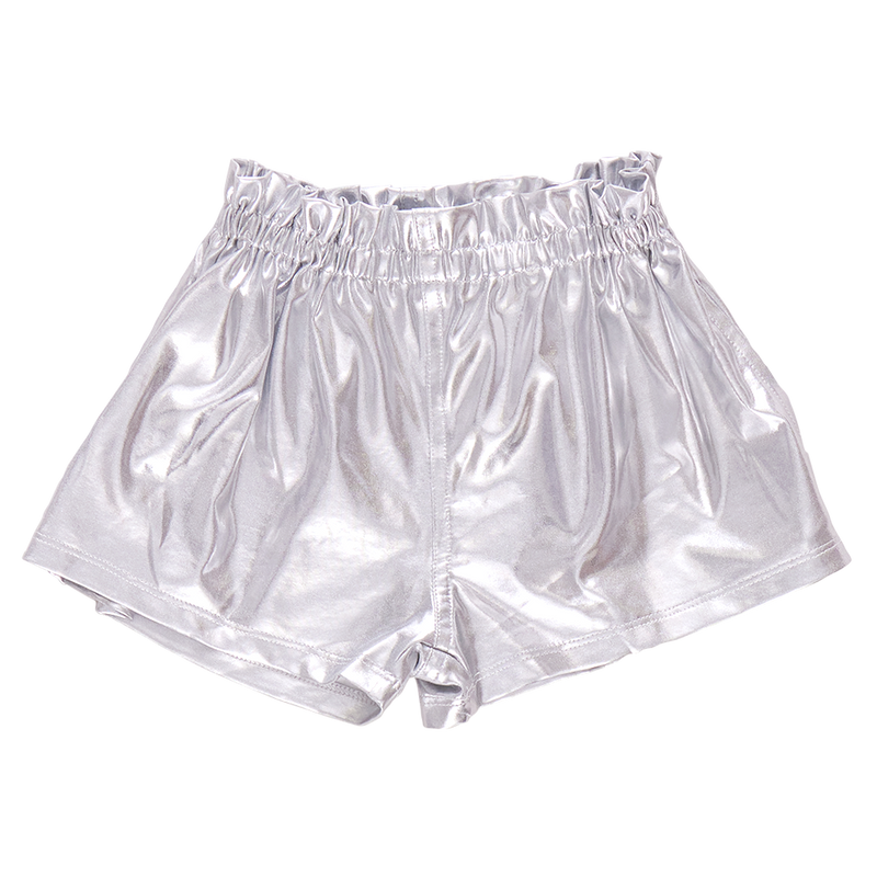 Glam Squad. Our Girls Lamé Theodore Short adds a touch of sparkle and shine to your little's wardrobe. Design features include a generous side pockets and a sassy ruffle at the elastic waist. Wear with a fun graphic tee on a school day to brighten everyone's mood! Available in Silver and Gold.