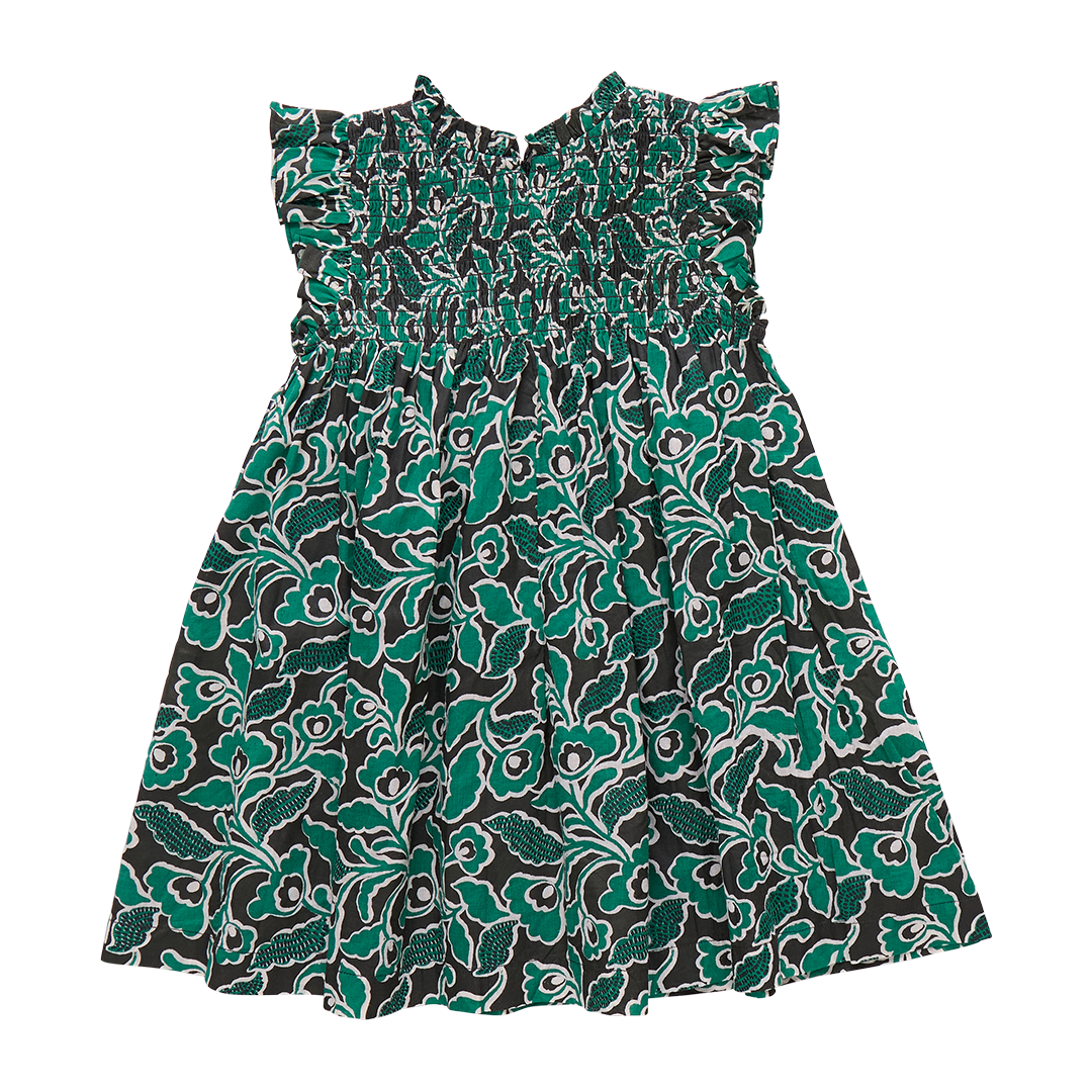 Online & Select Stores Exclusive! Give It The Green Light! You will be ready to go in our bold and beautiful Green Wax Floral shown here on our flock favorite Girls Stevie Dress. Vibrant shades of emerald and forest green bring this swirling print to life. Dressmaker details include a fluttery ruffled arm, subtle ruffle at the neck and vintage inspired smocking at the chest. Invisble zipper closure at the back. Match back to Mom in our Womens Valentina Dress.