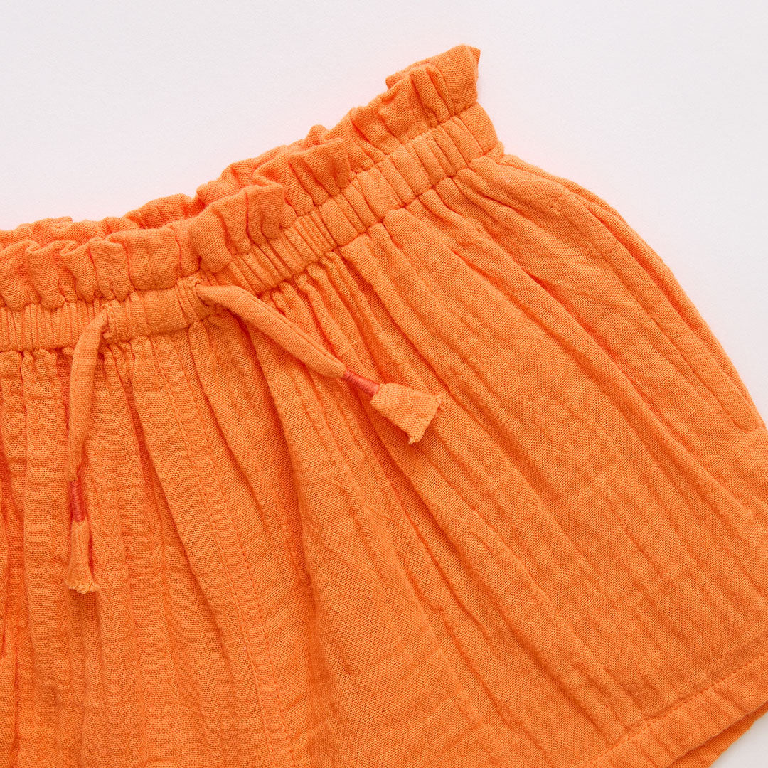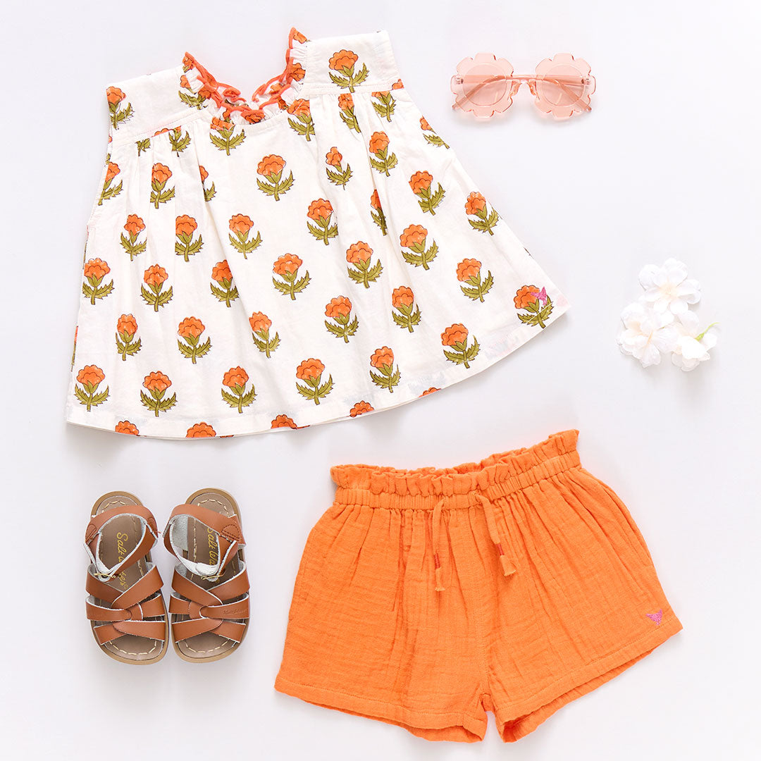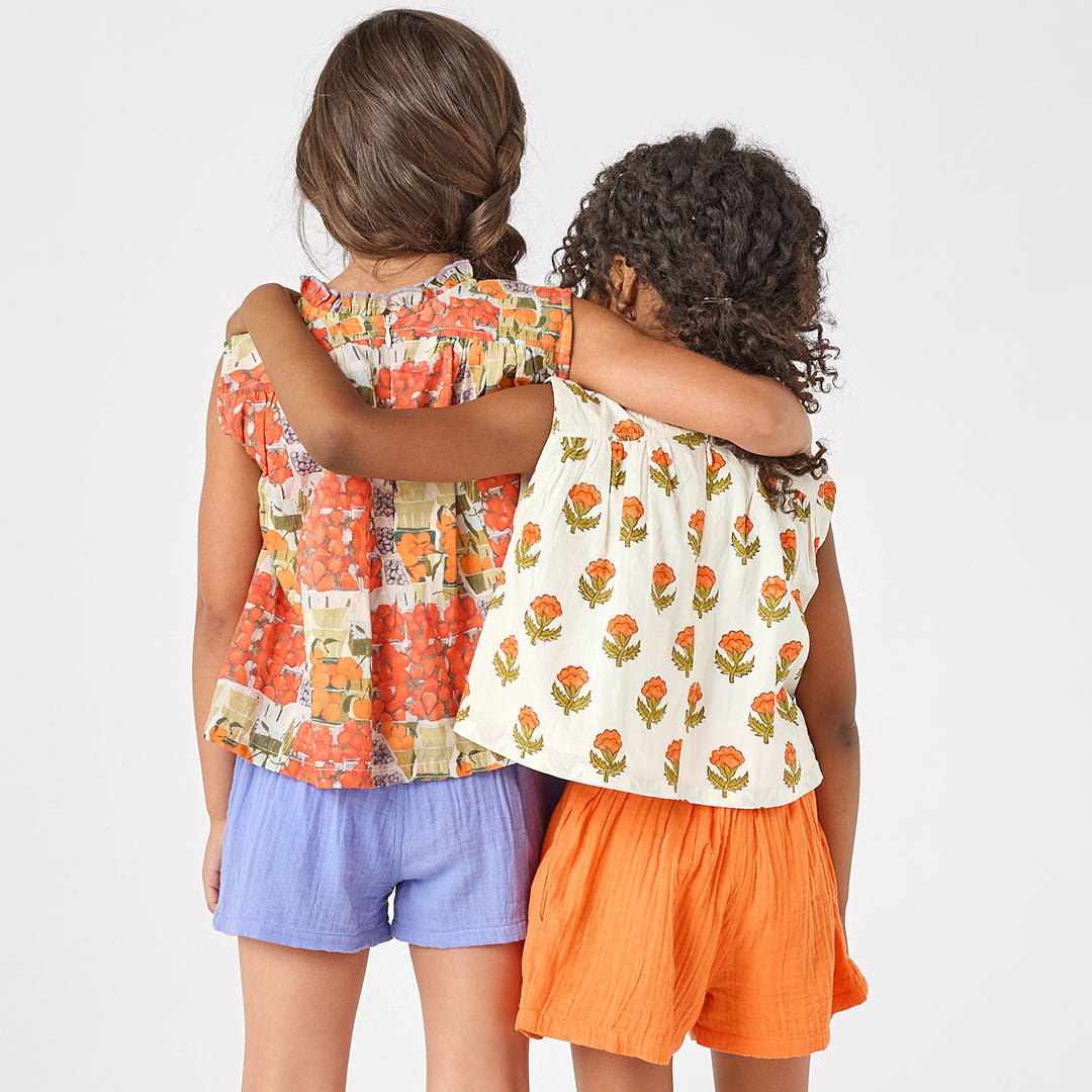 Collection Classic! Our versatile Girls Theodore Short has a carefree vibe when crafted in a light and airy 100% cotton double cloth gauze. Pair with a solid tee or or one of our printed Girls Misha Tops. These are the perfect bottoms for all day adventures whether at school or around the neighborhood. Available in Tiger Lily and Deep Periwinkle.