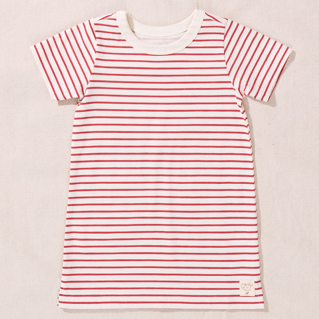 Made for movement, built for fun! Our Hopscotch Dress is the ultimate play-all-day outfit, giving your little one the freedom to run, jump, and win at every neighborhood game. This easy, boxy T-shirt dress has a straight fit, falls just below the knee, and is designed for nonstop adventures. Available in sun-drenched solids, vintage inspired prints, and classic stripes—always finished with our signature Coop logo patch at the hem!