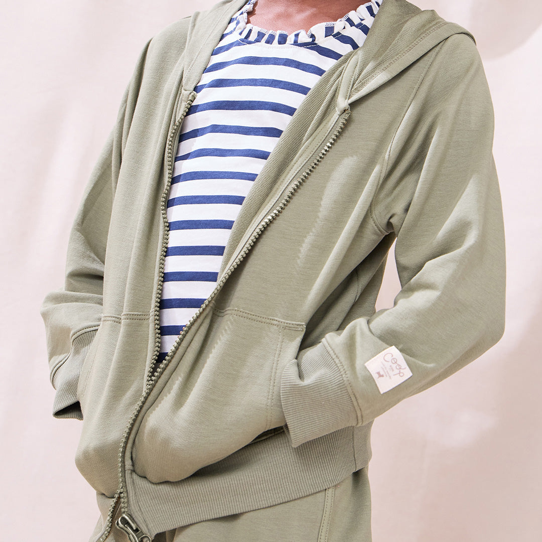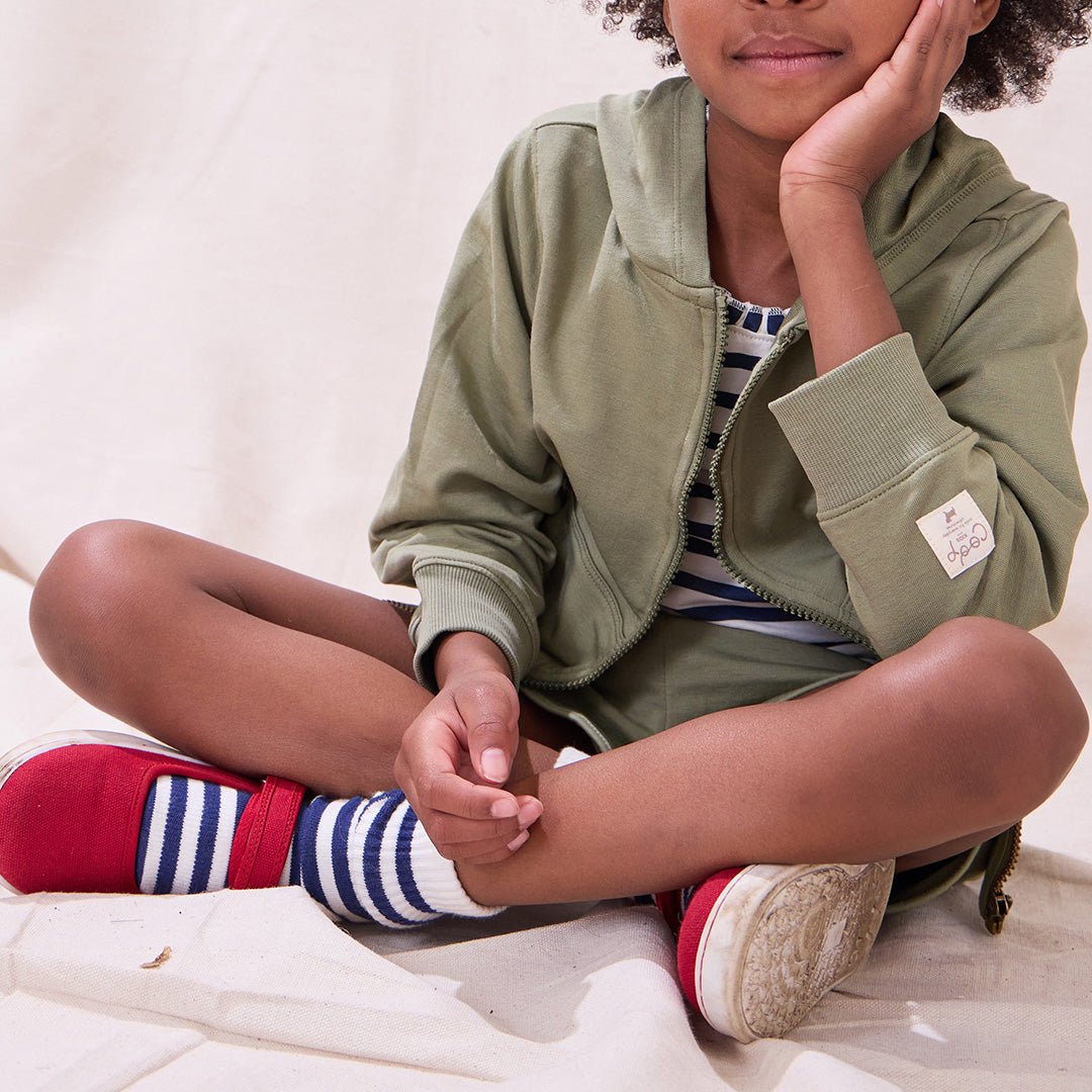 Cozy, cool, and ready for adventure! The real star here is our super-soft French Terry, making this zip-up hoodie a go-to for everyday fun. Designed with roomy front pockets (perfect for stashing all those found treasures!) and finished with ribbed cuffs and waist for a comfy fit. Pair it with our Jax Jogger for the ultimate play-all-day ensemble!