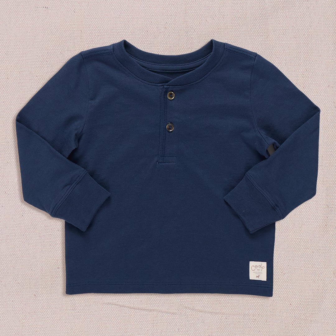 Our Scout Long Sleeve Henley is the perfect partner to all of your little's creative capers. Featuring a classic Henley button front placket with faux horn buttons, this long-sleeve tee is always on deck in the weekly rotation. With different solid colors there's no shortage of choices!
