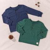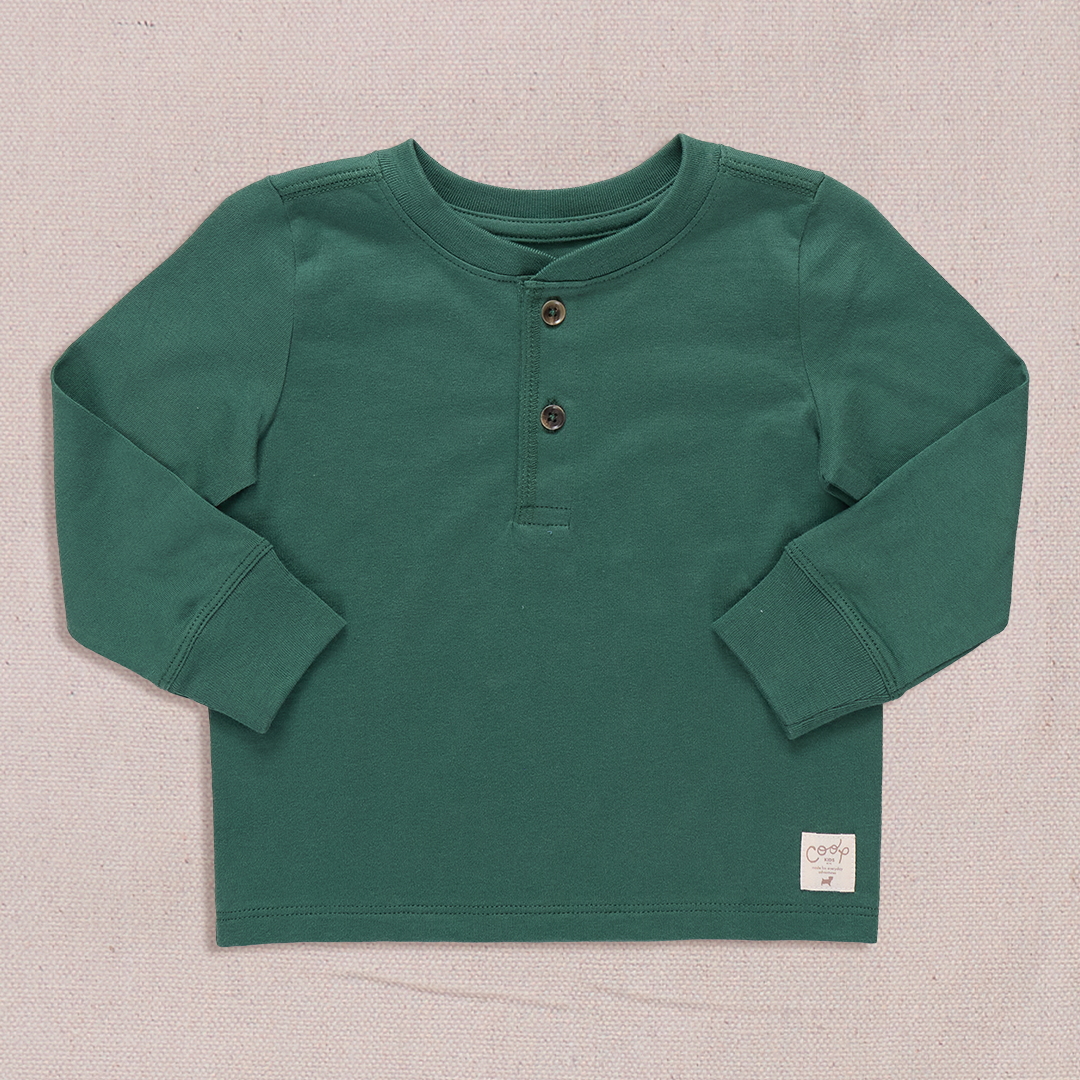 Our Scout Long Sleeve Henley is the perfect partner to all of your little's creative capers. Featuring a classic Henley button front placket with faux horn buttons, this long-sleeve tee is always on deck in the weekly rotation. With different solid colors there's no shortage of choices!