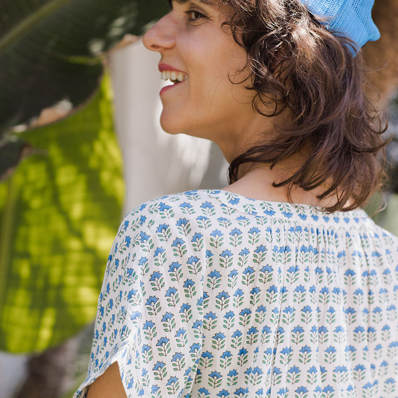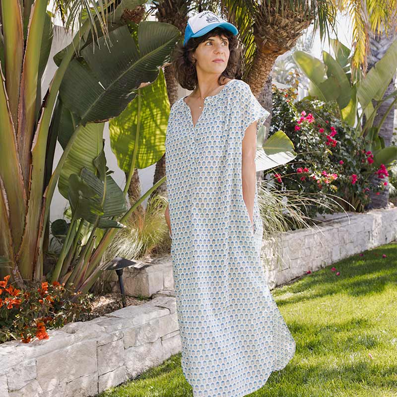 A Million Little Flowers! Our Womens Cooper Coverup, in our classic boho chic block print Prairie Flower, works well for a day at the beach, dinner with friends and so much more. An open v-neck, wide sleeve openings, bottom side slits and our favorite, comfy side pockets, define this wear anywhere casual silhouette. Pulls over the head. Perfect for all figures, even expectant mamas! Match back to your girls in our Baby Girls Elsie Bubble and Girls Kamari 2-Piece Set in Prairie Flower for a crisp Summer Mommy & Me moment.