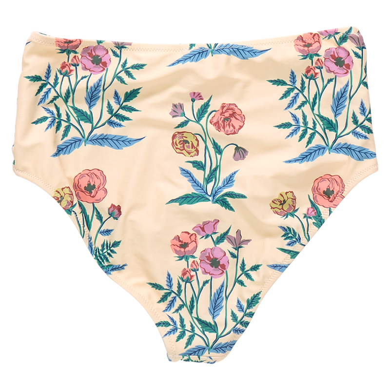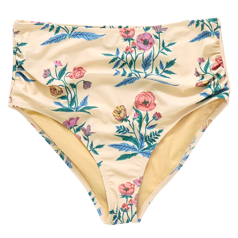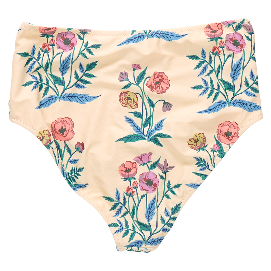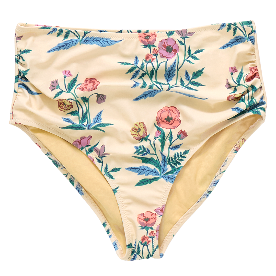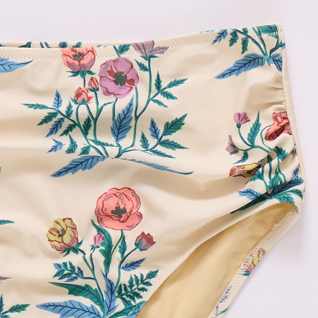 Wild About Flowers! Proud poppies spring from a pale yellow ground on our not at all basic Womens Courtney Tankini Bottom. The easy to wear, practical bottom with flattering ruched sides provides the perfect amount of coverage to feel your best at the beach, pool or lake. Match with our Womens Courtney Tankini Top in Pale Yellow Poppy or mix with the tankini top in Pink Flowerette. Match back to our Girls Via Suit and our Girls Rachel suit for a very pretty Mommy and Me moment.