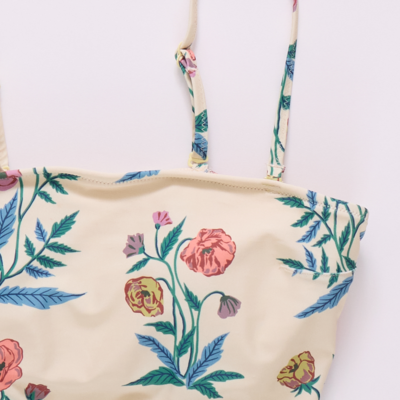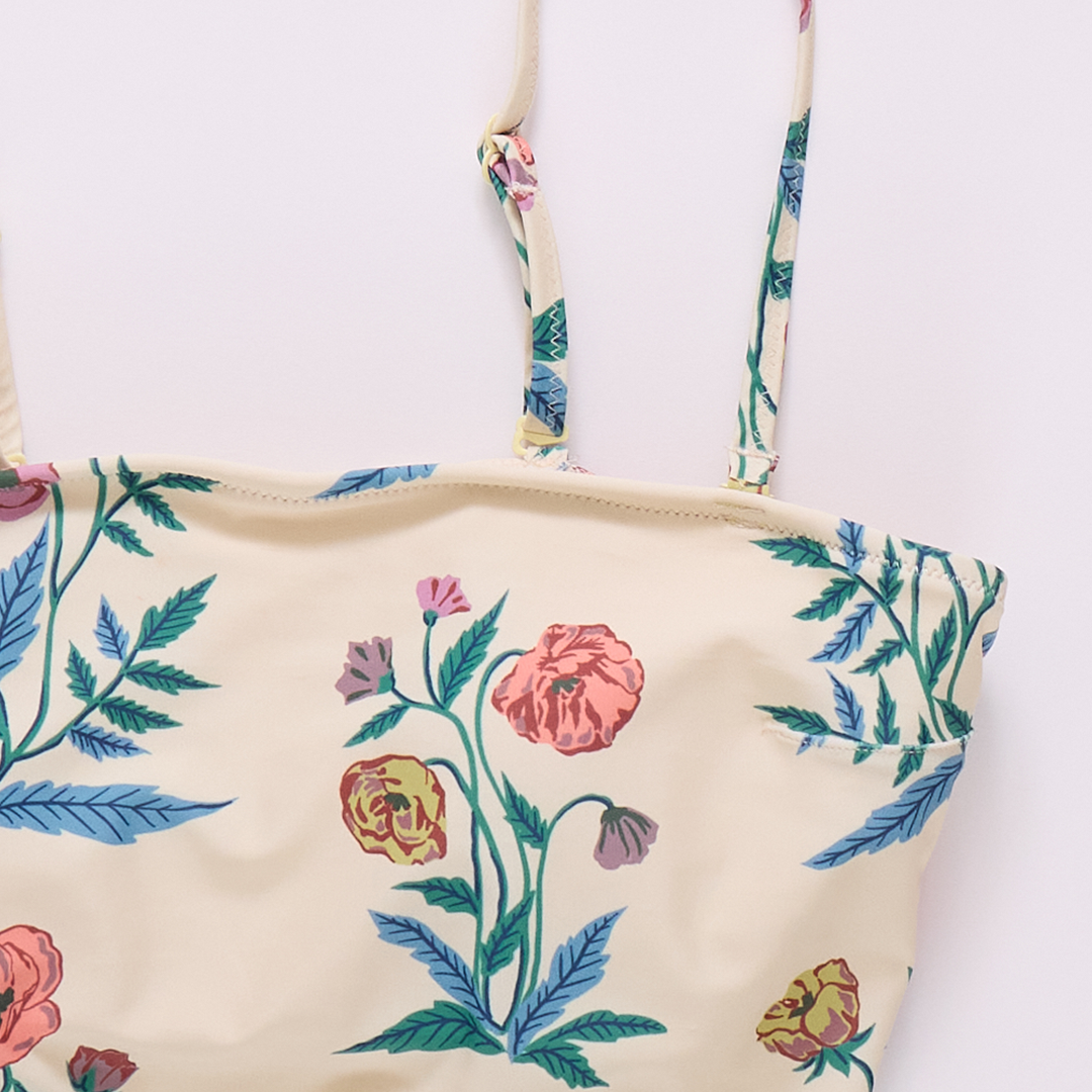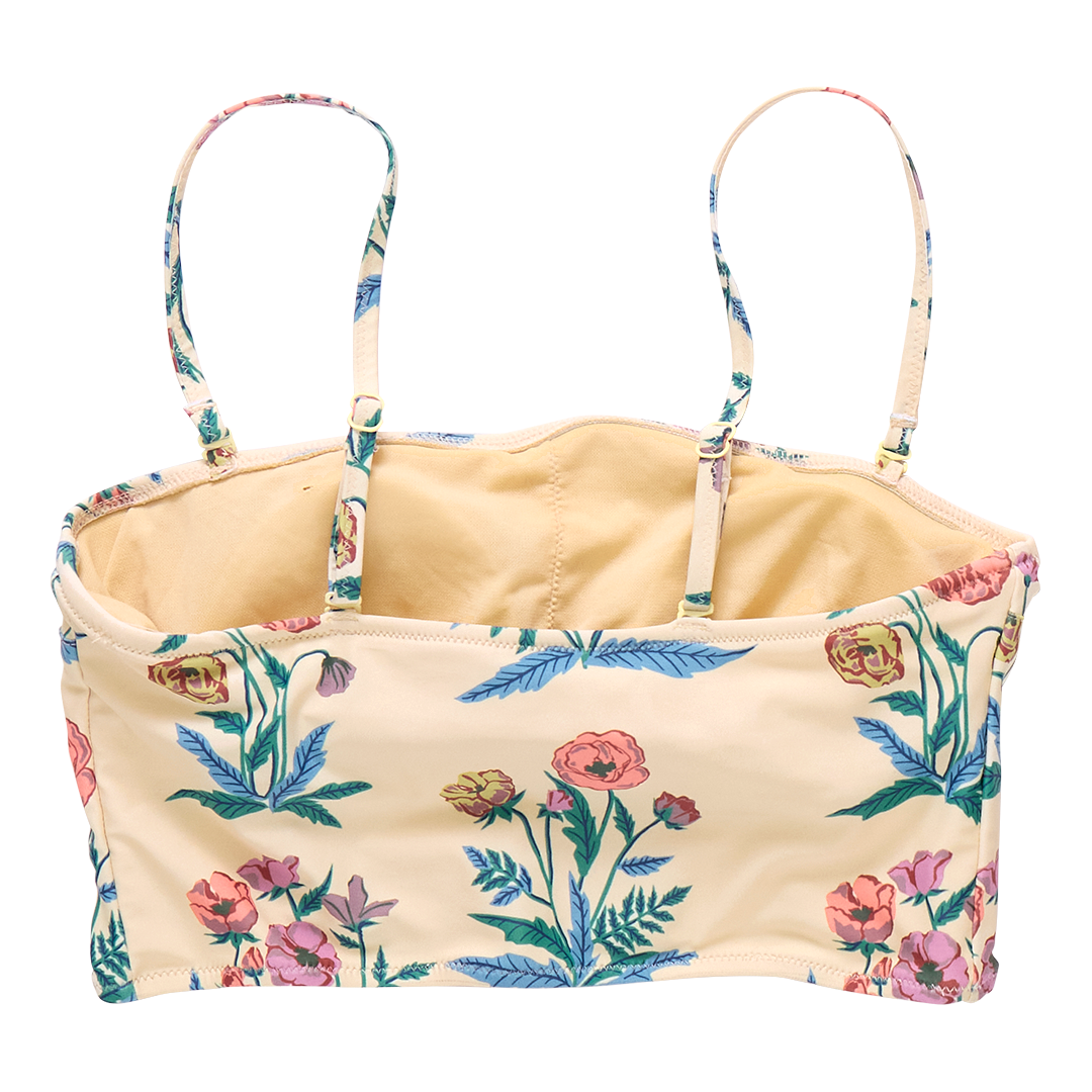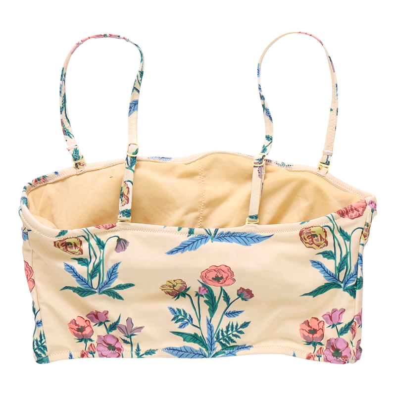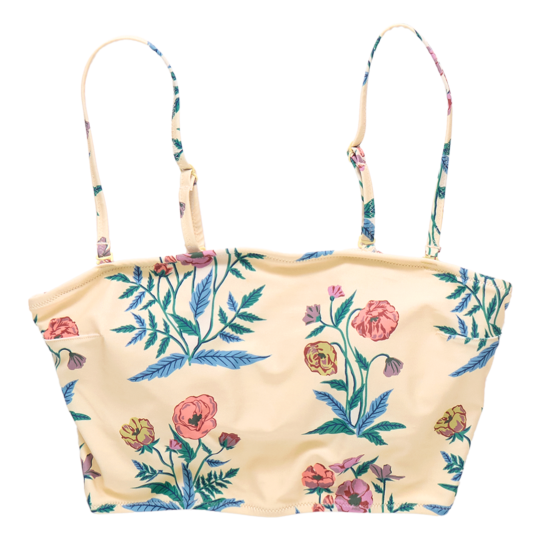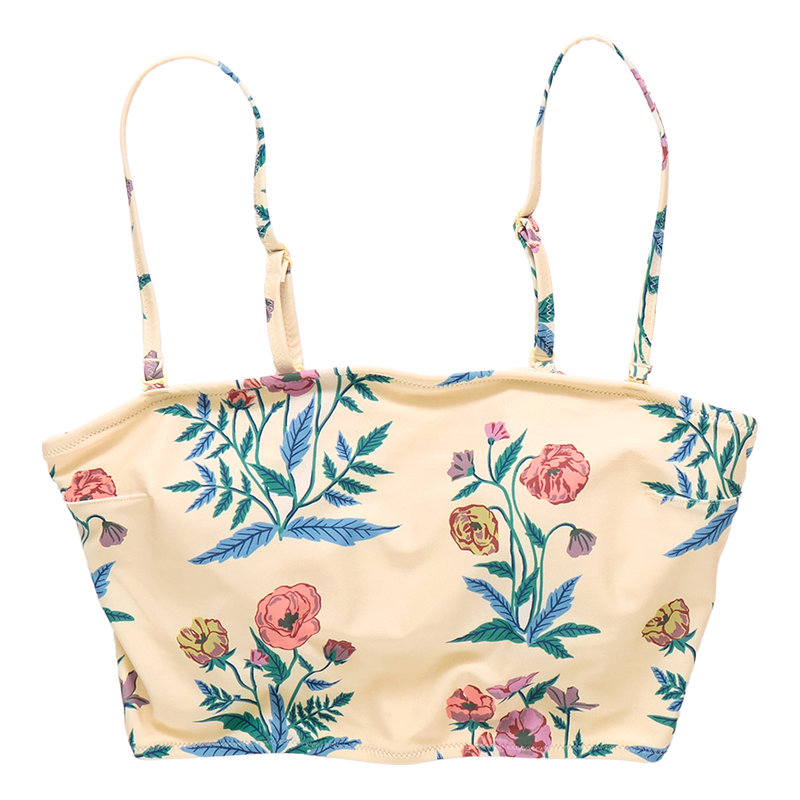 Wild About Flowers! Proud poppies spring from a pale yellow ground on our not at all basic Womens Courtney Tankini Top. Adjustable and removable skinny shoulder straps give you a two for one look! The easy to wear top features a practical shelf bra with removable padding. Match with our Womens Courtney Tankini Bottom in Pale Yellow Poppy or mix with the tankini bottom in Pink Flowerette. Match back to our Girls Via Suit and our Girls Rachel suit for a very pretty Mommy and Me moment.